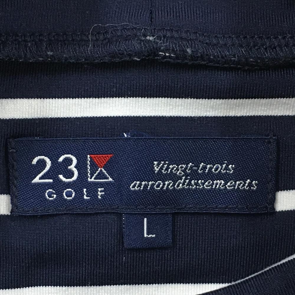 【超美品】23区ゴルフ 長袖ハイネックシャツ ネイビー×白 ボーダー メンズ L ゴルフウェア 23区