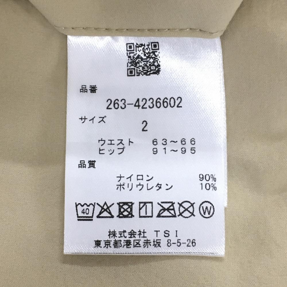 【超美品】ジャックバニー パンツ ベージュ×黒 ロゴプリント ウエストゴム ストレッチ レディース 2(L) ゴルフウェア Jack Bunny
