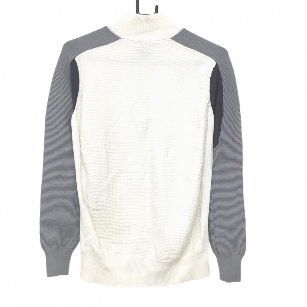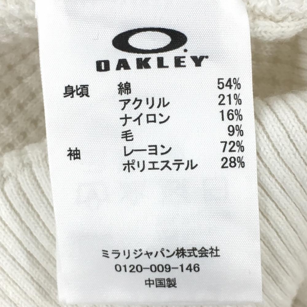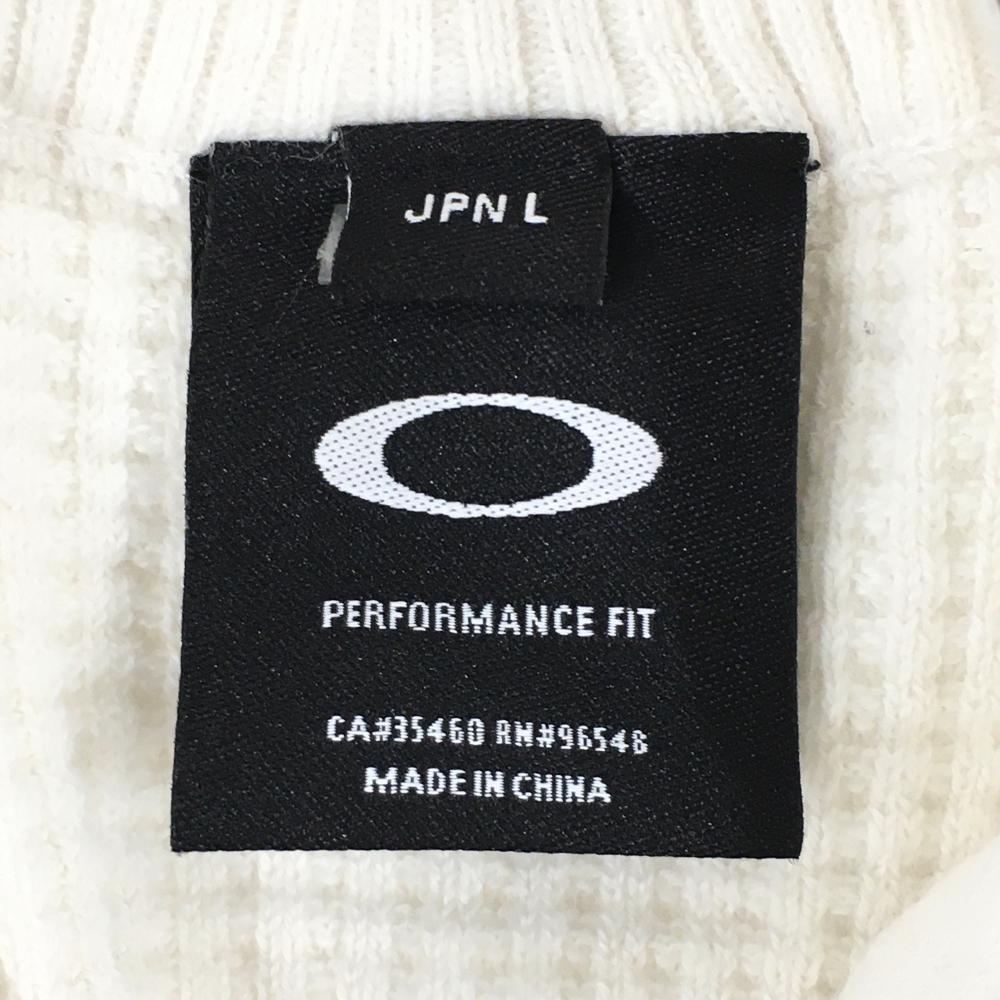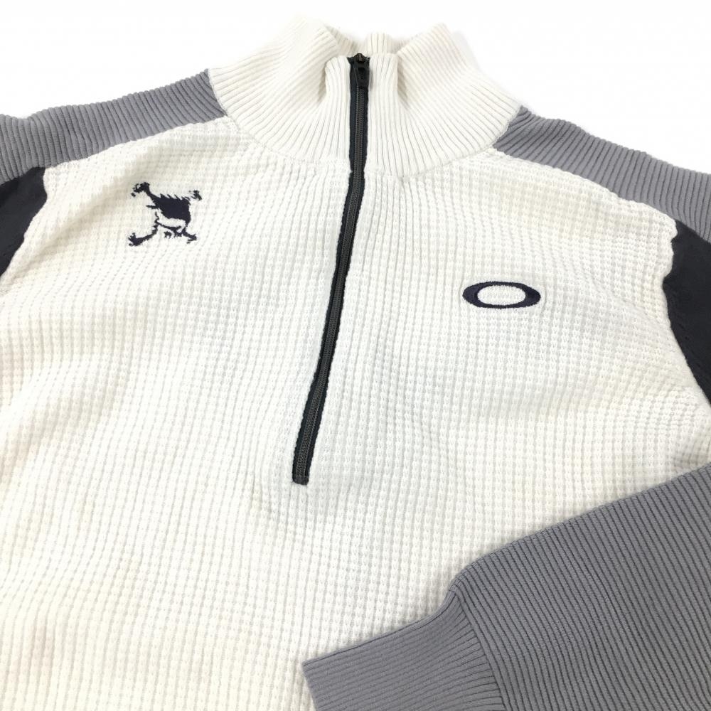 【美品】オークリー 長袖ハイネックシャツ 白×グレー 身頃ワッフル生地調 ハーフジップ メンズ L ゴルフウェア Oakley