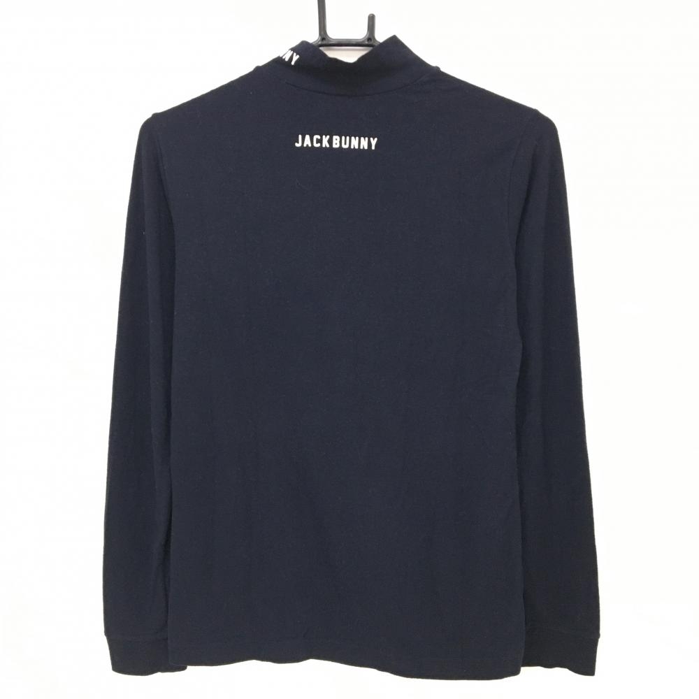 ジャックバニー 長袖ハイネックシャツ ネイビー×白 ロゴプリント 微起毛 レディース 1(M) ゴルフウェア Jack Bunny