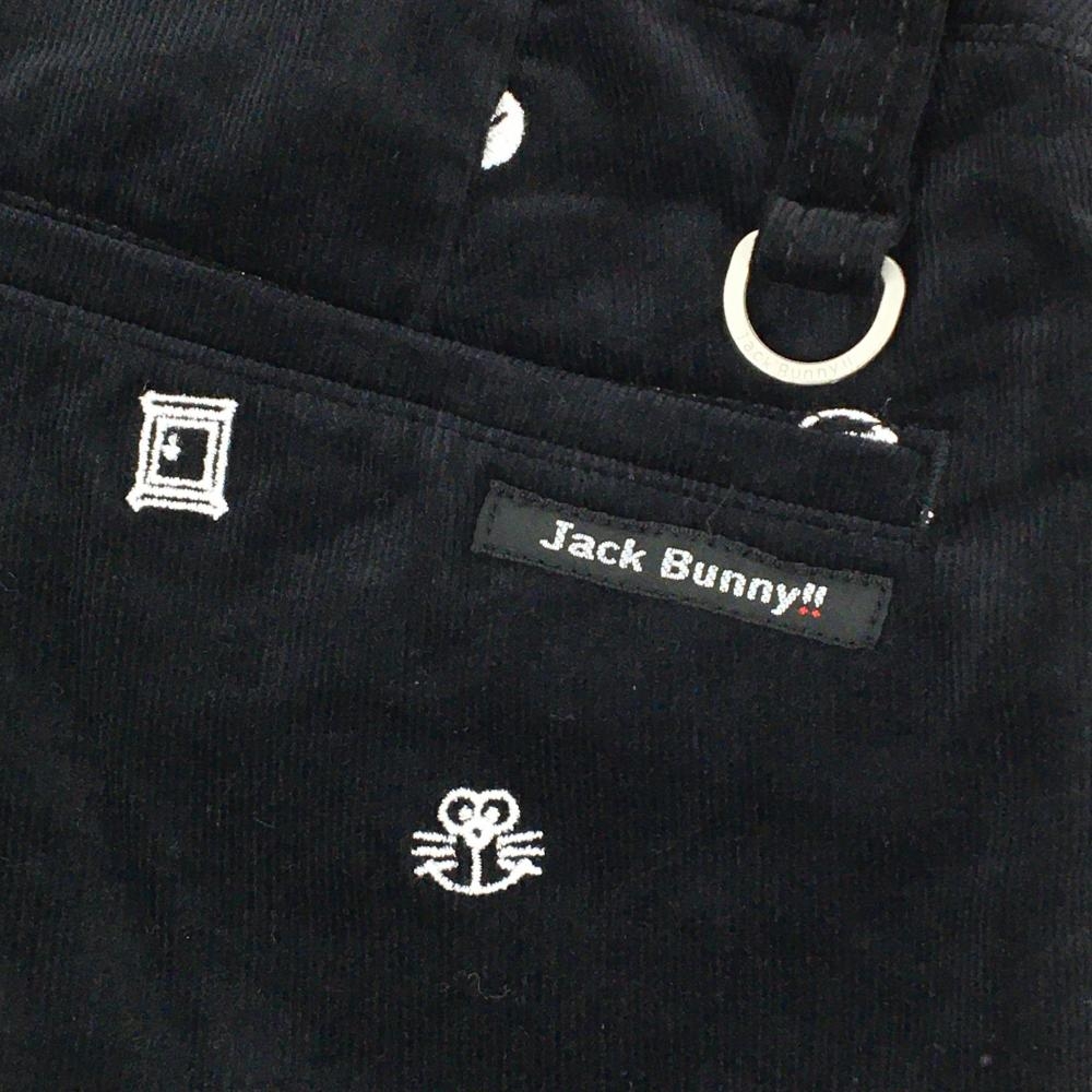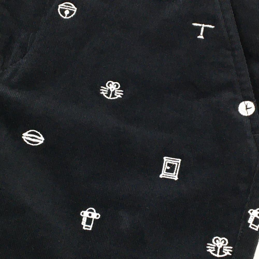【美品】ジャックバニー×ドラえもん コーデュロイパンツ 黒×白 刺しゅう総柄 ストレッチ レディース 0(S) ゴルフウェア Jack Bunny