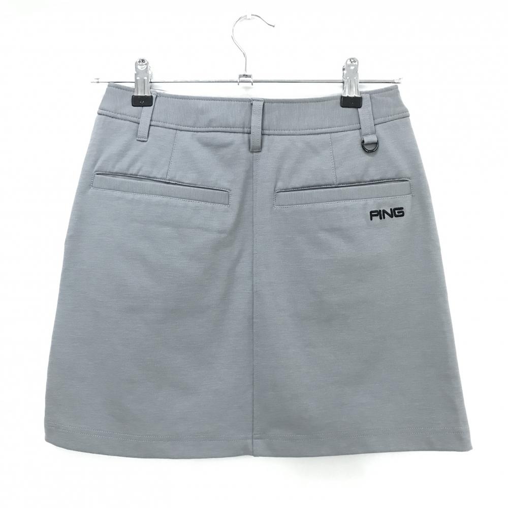 【超美品】ピン スカート グレー×黒 フロントジップ ロゴ刺しゅう レディース S ゴルフウェア PING