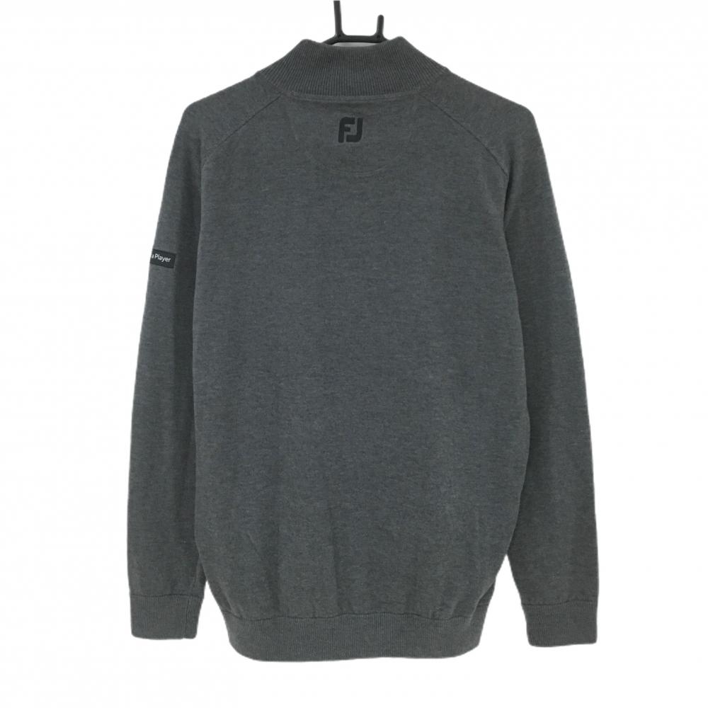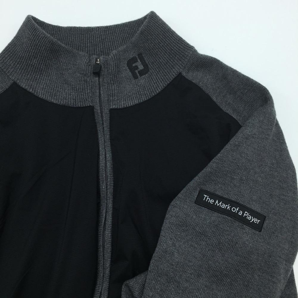 【美品】フットジョイ 異素材ニットジャケット 黒×グレー ウール混 前身頃ナイロン メンズ L ゴルフウェア FootJoy