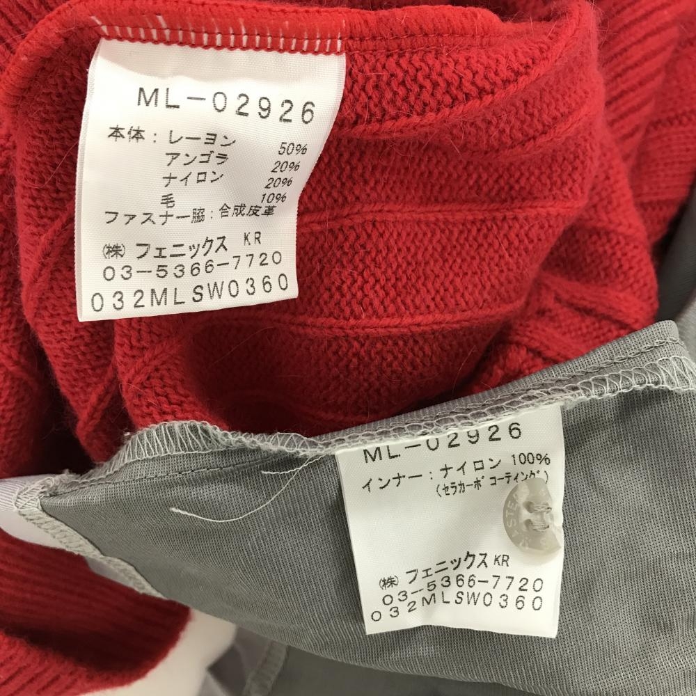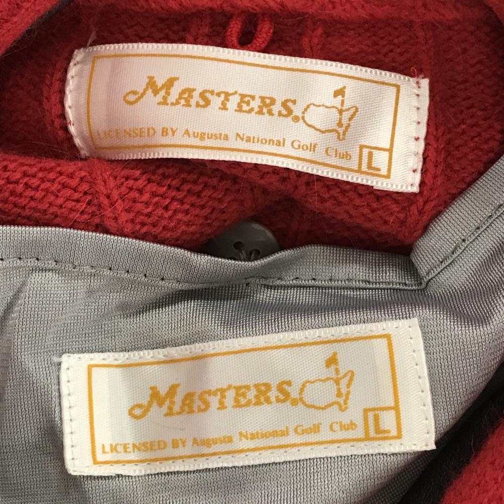 【美品】マスターズ ハイネックセーター レッド ハーフジップ 裏地取外し可 胸ピンバッジ付き レディース L ゴルフウェア Masters