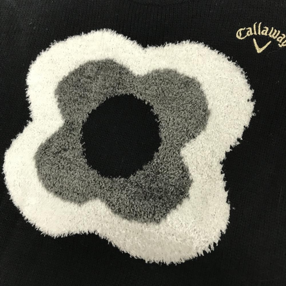 【美品】キャロウェイ セーター 黒×白 前面花柄 ウール混 裏地付 レディース M ゴルフウェア Callaway