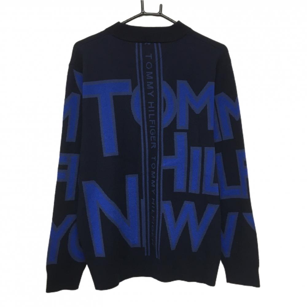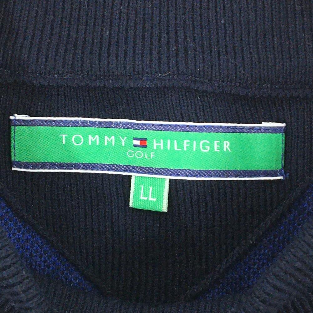 【美品】トミーヒルフィガー セーター ネイビー×ブルー ロゴ総柄 ニット メンズ LL ゴルフウェア Tommy Hilfiger Golf