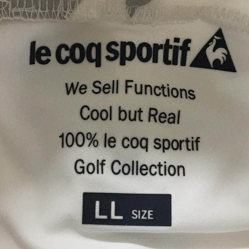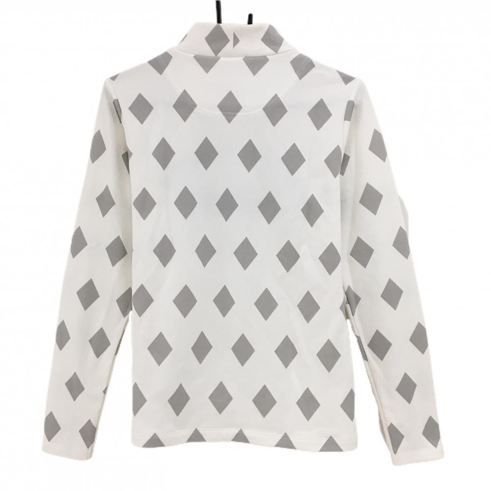 【美品】ルコックゴルフ 長袖ハイネックシャツ 白×グレー ダイヤ柄 裏微起毛 ロゴ刺しゅう レディース LL ゴルフウェア le coq sportif