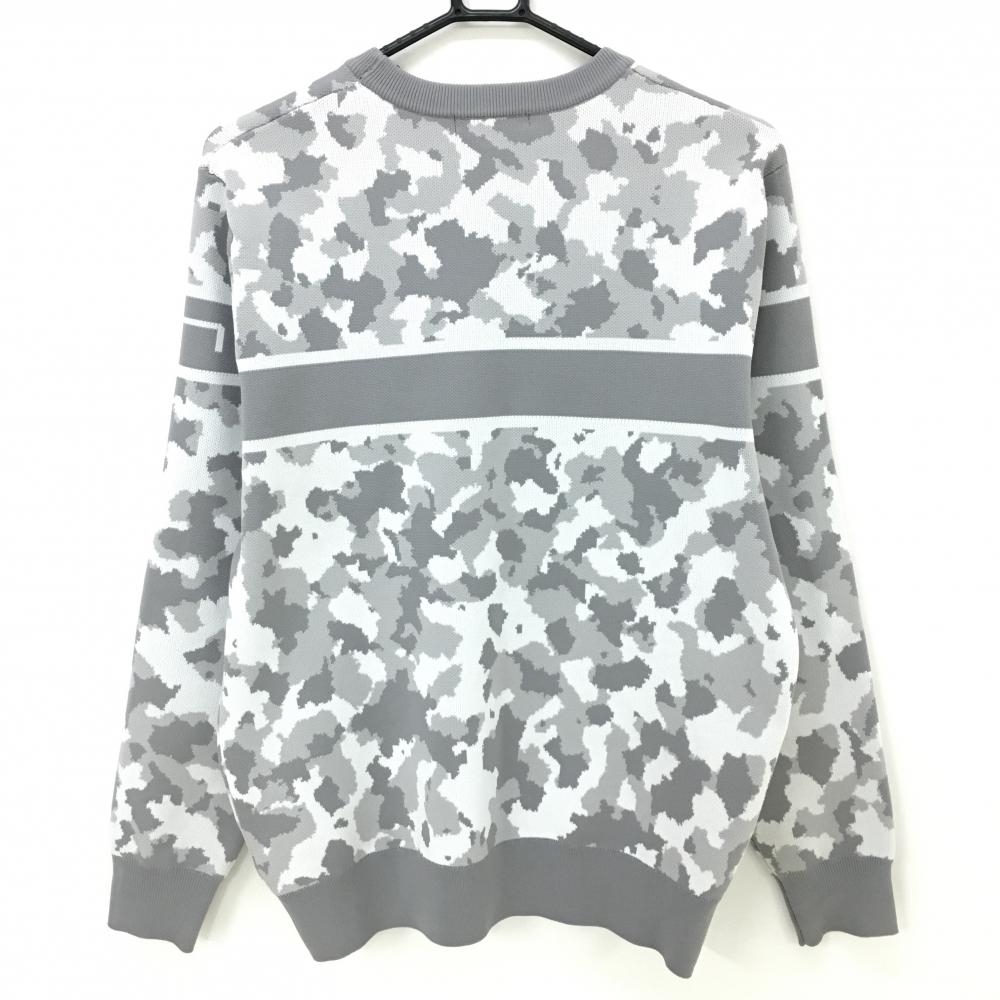 【超美品】ロサーセン セーター 白×グレー 総柄 カモフラ風 ロゴ ニット メンズ M ゴルフウェア Rosasen