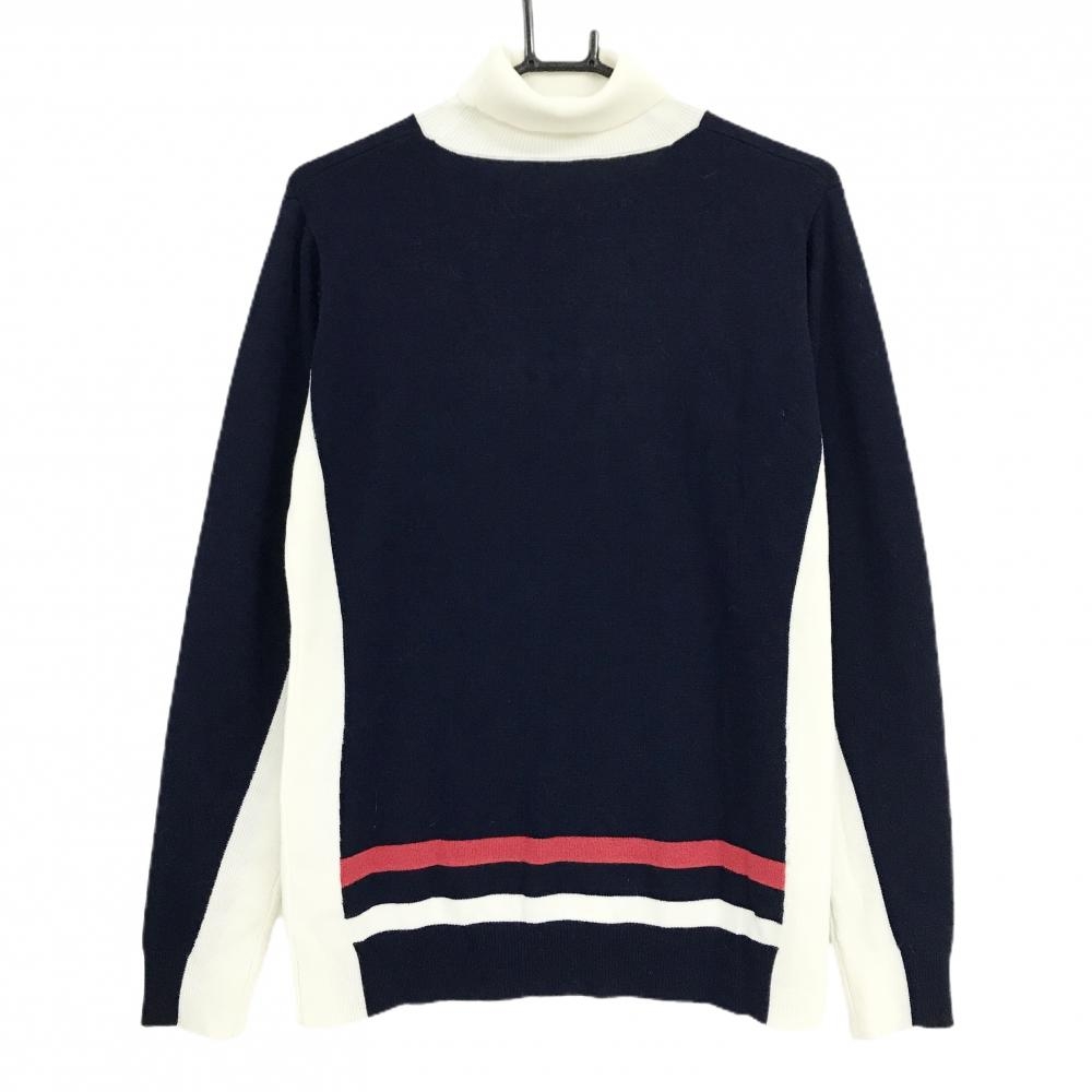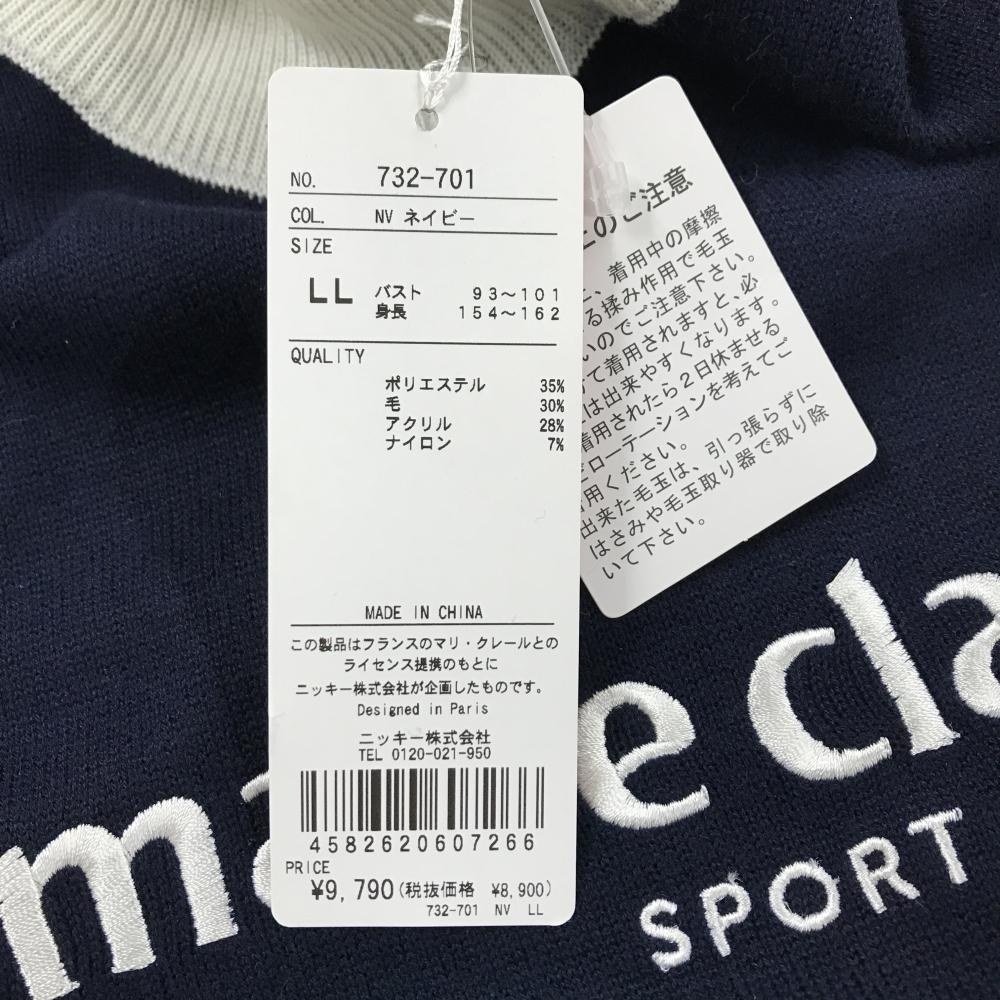 【新品】マリクレール タートルネックセーター ネイビー×白 フロントロゴ刺しゅう レディース LL ゴルフウェア marie claire