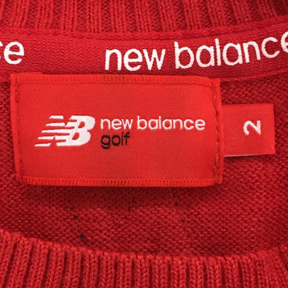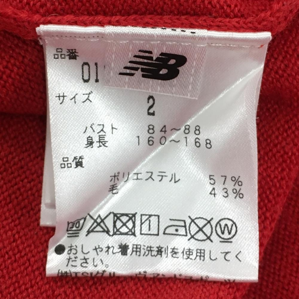 ニューバランスゴルフ セーター レッド×ネイビー 袖ライン ウール混 ニット レディース 2(L) ゴルフウェア New Balance
