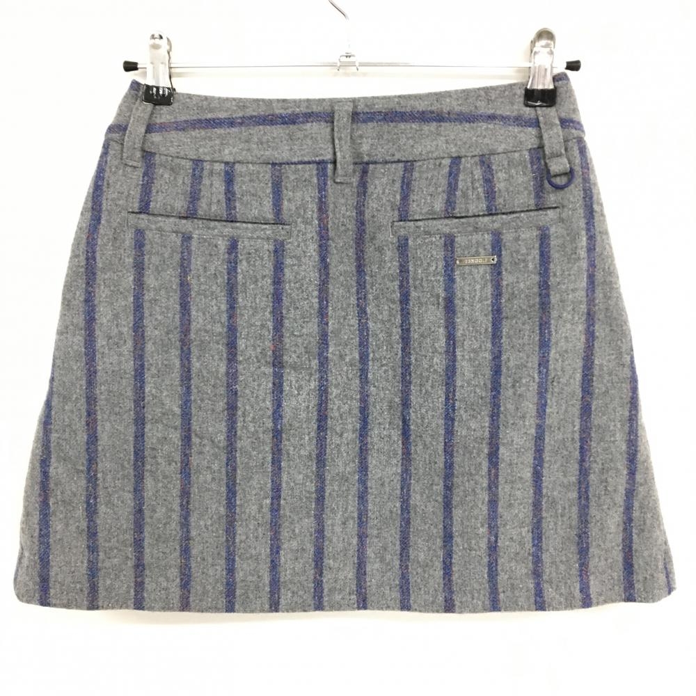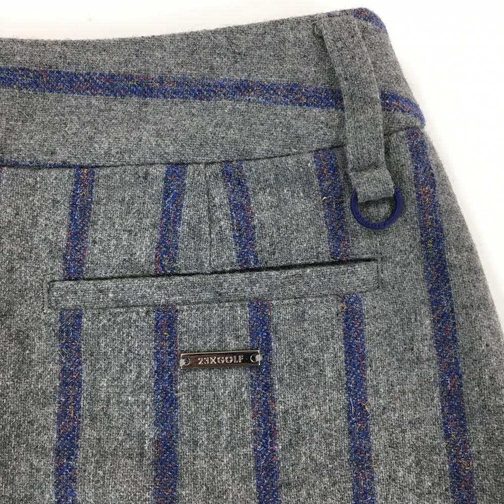 【超美品】23区ゴルフ ウールスカート グレー×ブルー ストライプ調 ボックスプリーツ 裏地付き レディース 6(S) ゴルフウェア 23区