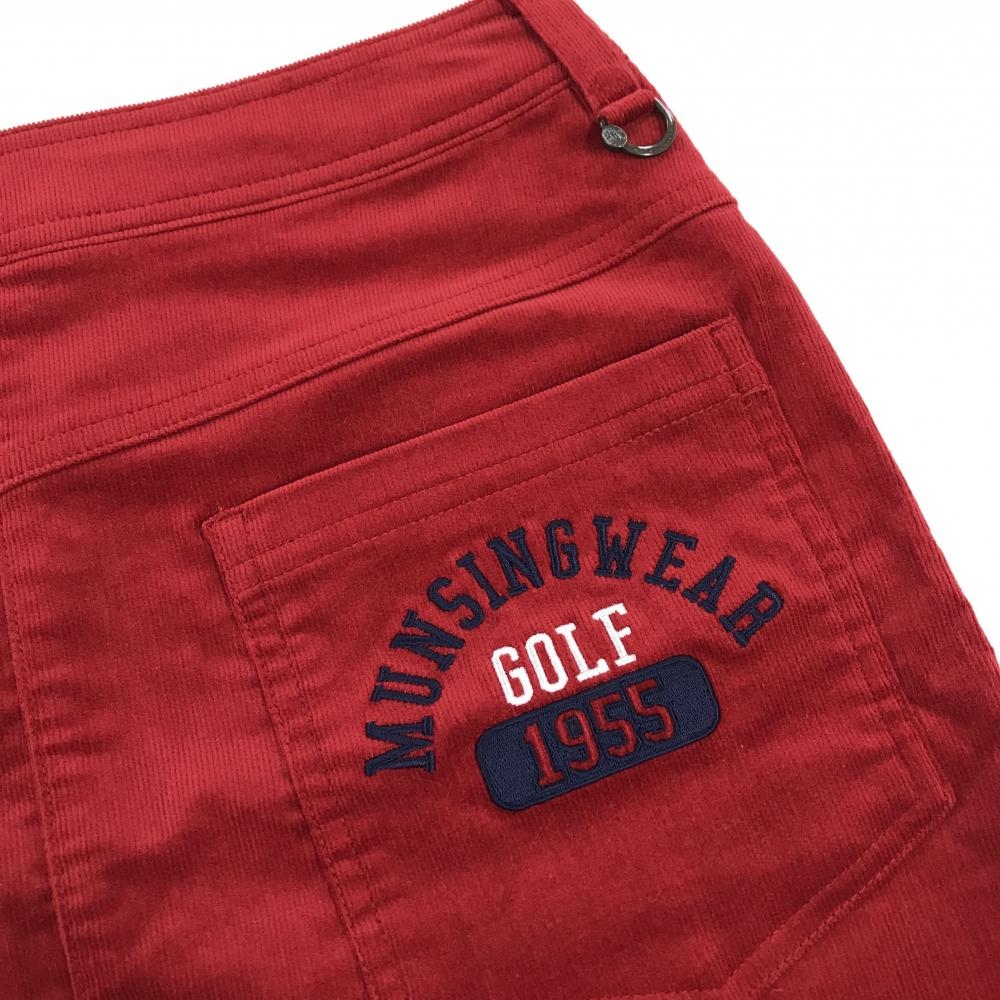 【新品】マンシングウェア コーデュロイスカート レッド ロゴ刺しゅうネイビー ストレッチ レディース 13 ゴルフウェア Munsingwear