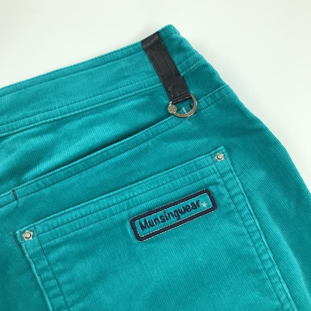 【超美品】マンシングウェア コーデュロイパンツ グリーン ロゴ刺しゅう レディース 15 ゴルフウェア Munsingwear