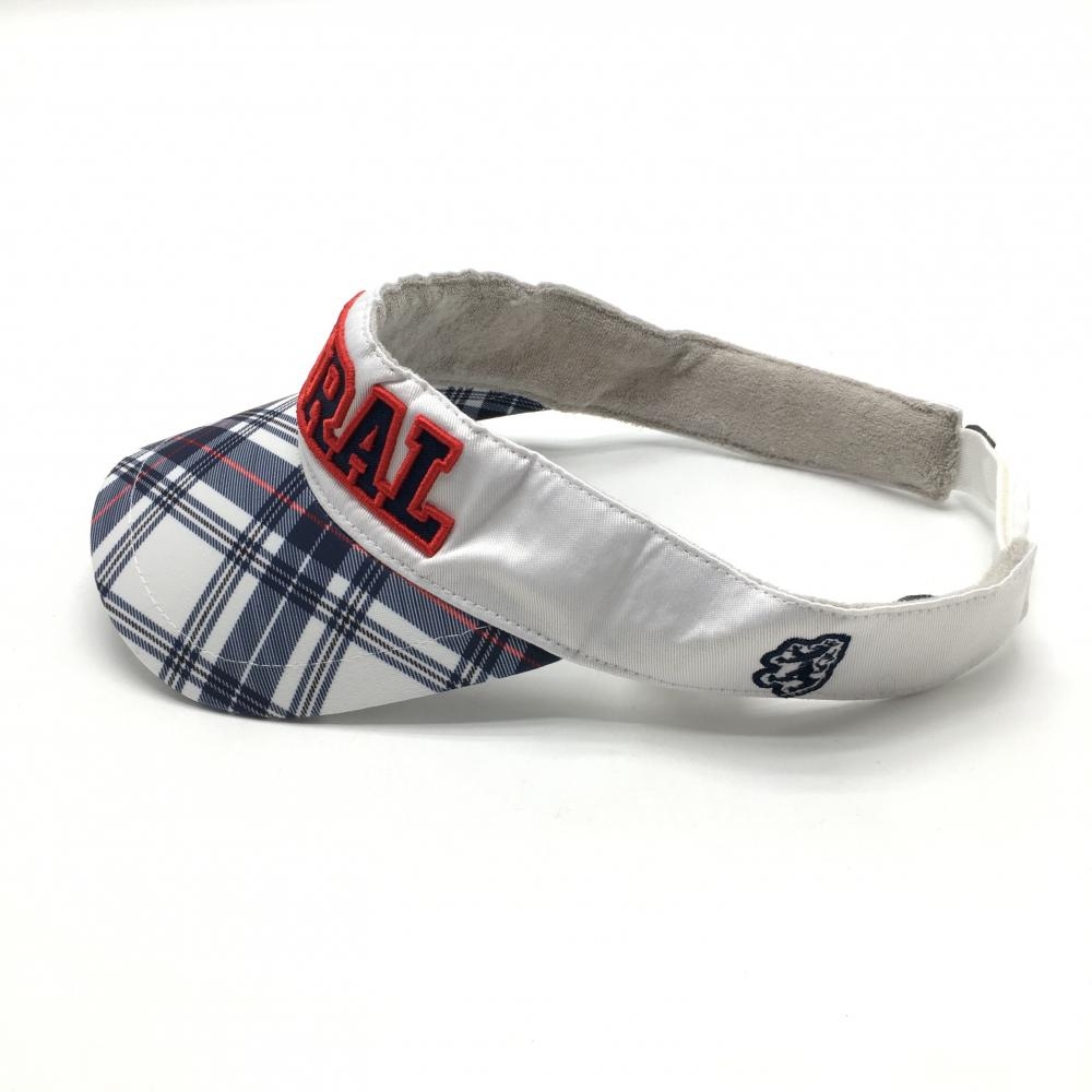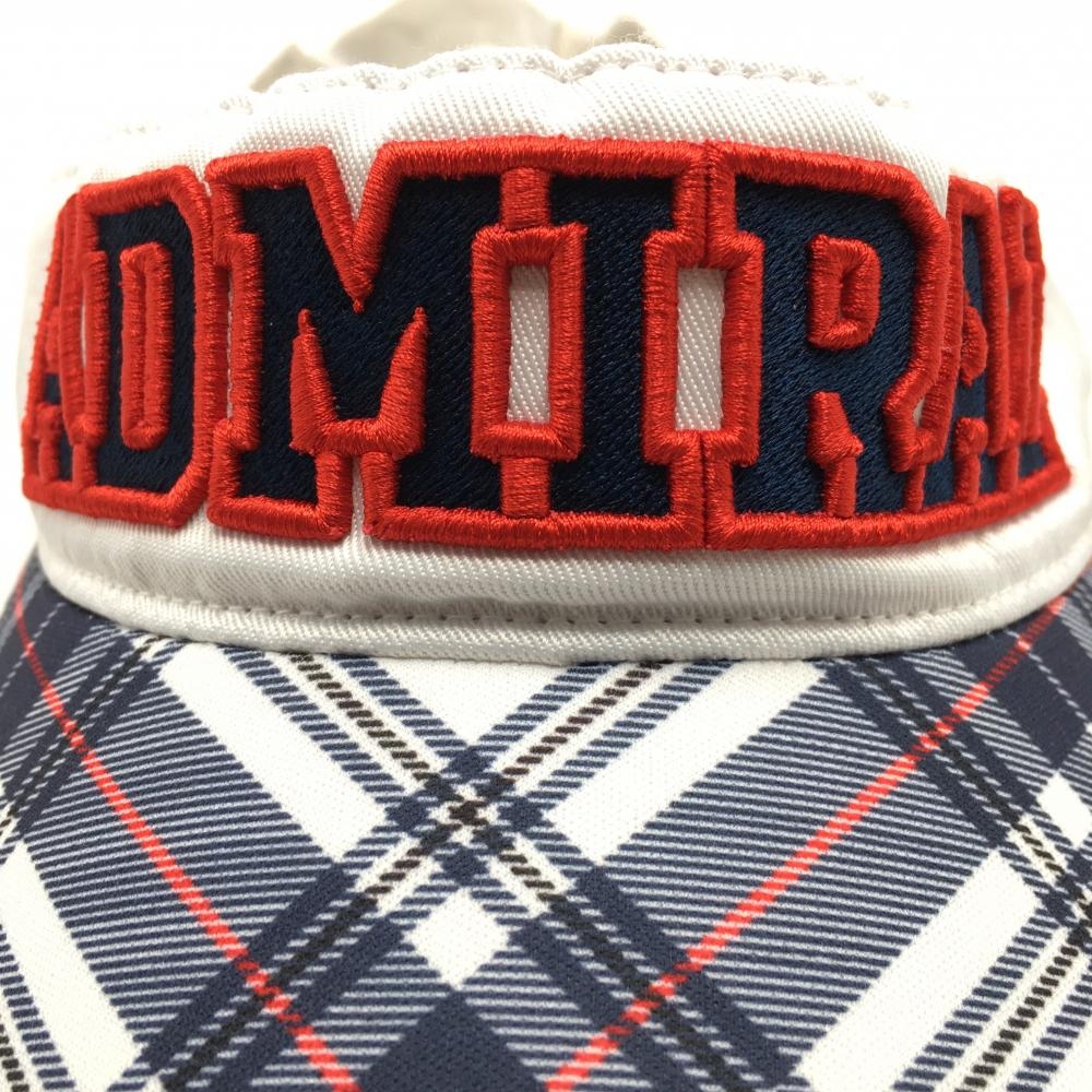 【美品】アドミラル サンバイザー 白×ネイビー×レッド つばチェック 内側毛羽立ち少 フリーサイズ(57㎝) ゴルフウェア Admiral