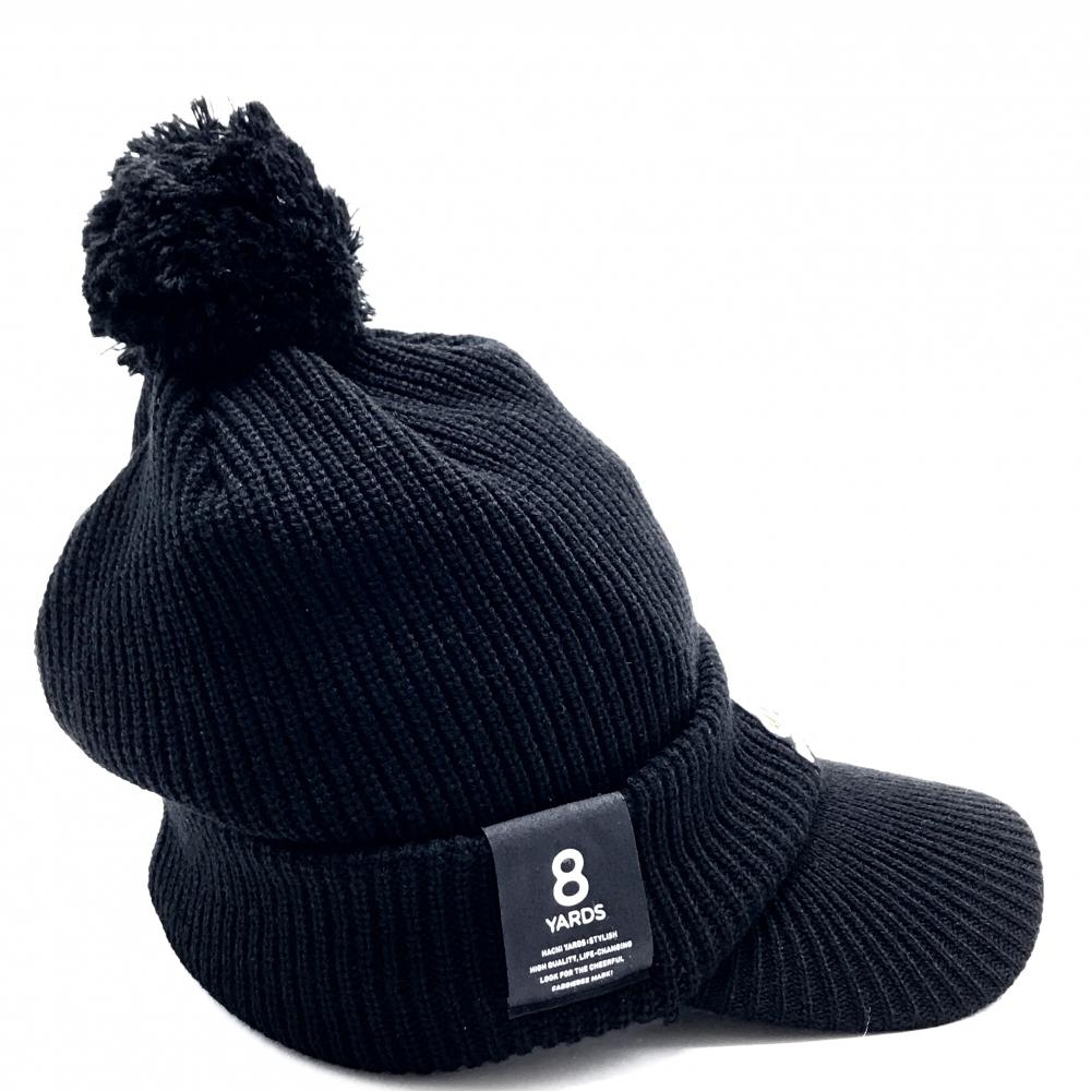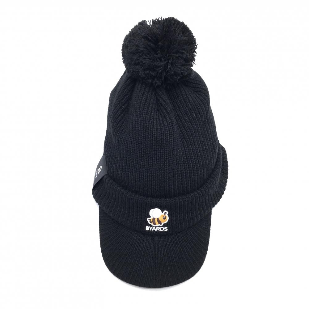 【新品】ハチヤーズ つば付ニット帽 黒 ロゴ刺しゅう ボンボン付 ゴルフウェア 2024年モデル 8YARDS