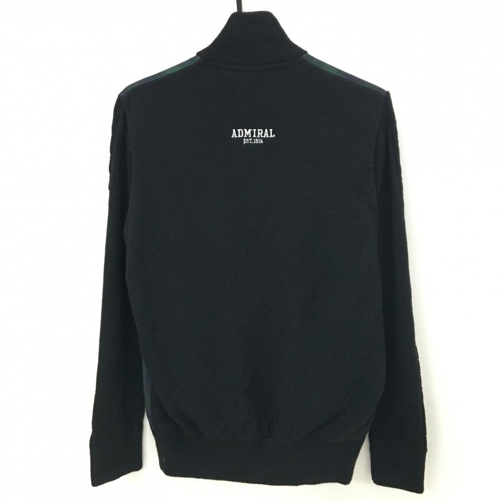 アドミラル 切替ニットジャケット グリーン×黒 前身頃チェック ウール混 メンズ L ゴルフウェア Admiral