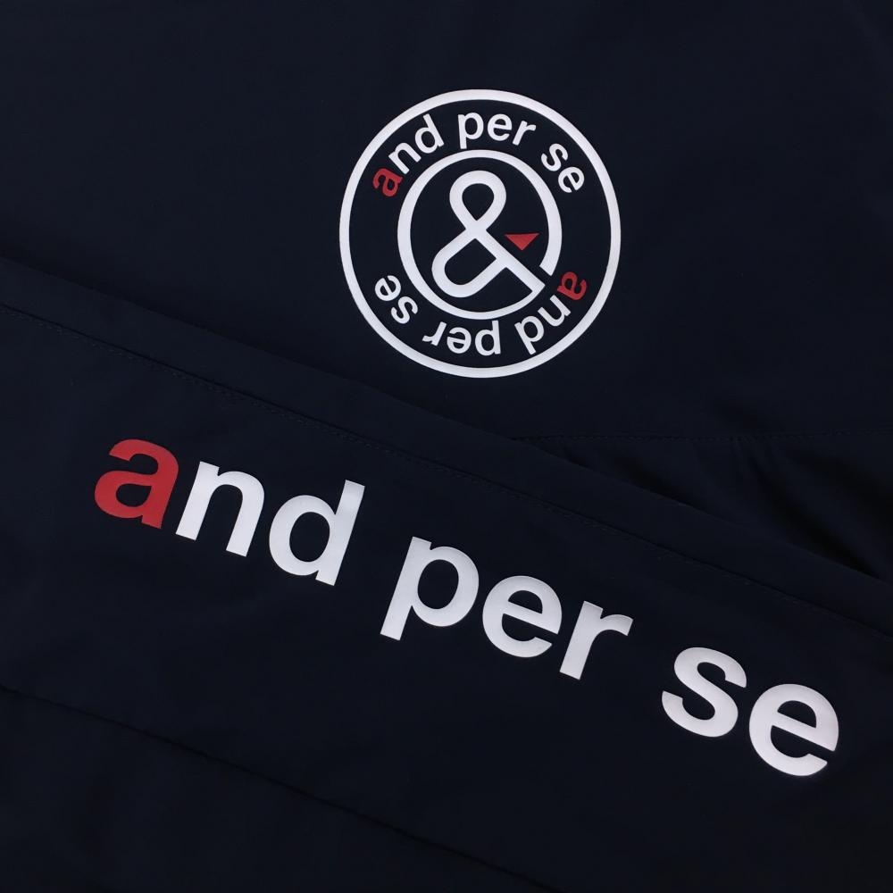 アンパスィ 中綿スニード ネイビー 後ろ身頃中綿 ロゴプリント メンズ L ゴルフウェア and per se