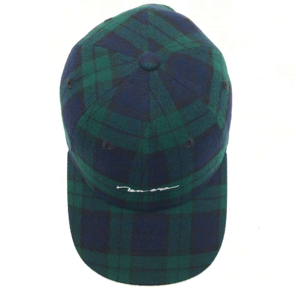【超美品】ニューエラ キャップ グリーン×ネイビー チェック柄 ロゴ刺しゅう ゴルフウェア New Era