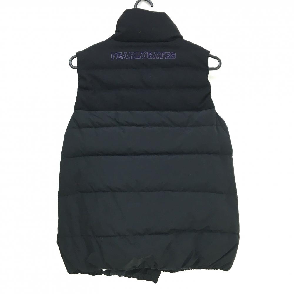 【美品】パーリーゲイツ 異素材ダウンベスト 黒 ウール混 レディース 2(L) ゴルフウェア PEARLY GATES