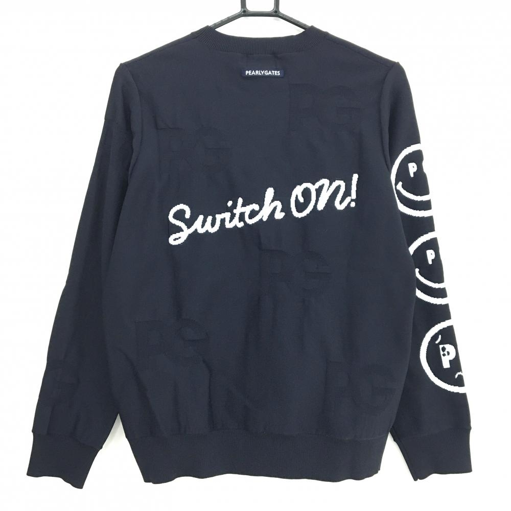 【新品】パーリーゲイツ セーター ネイビー×白 袖ニコちゃん スマイル ニット レディース 2(L) ゴルフウェア 2025年モデル PEARLY GATES
