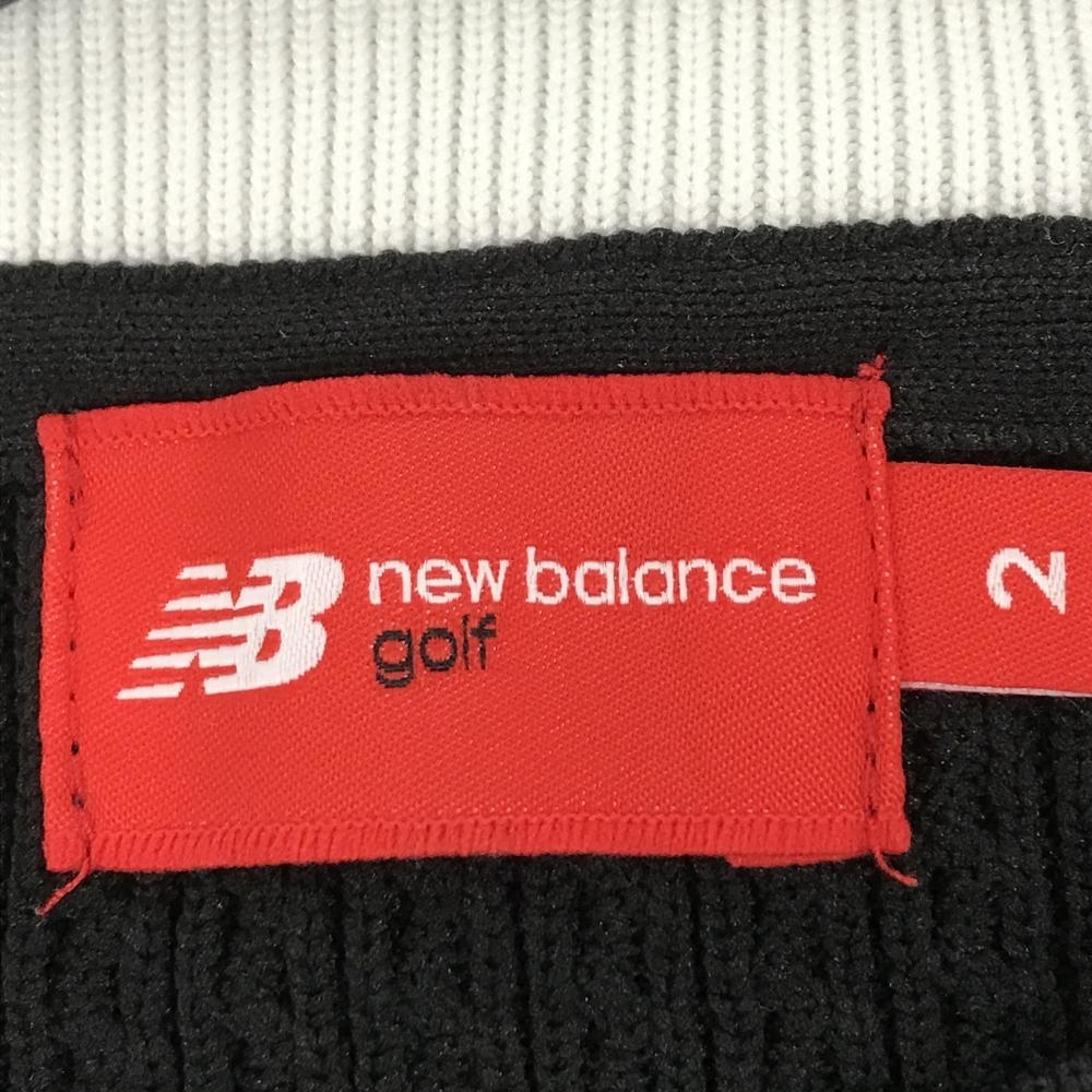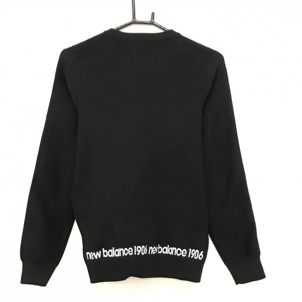 【超美品】ニューバランスゴルフ セーター 黒 身頃立体編み ロゴ白 ニット レディース 2(L) ゴルフウェア New Balance