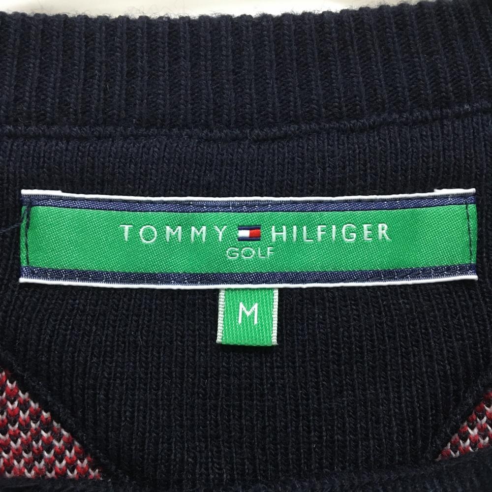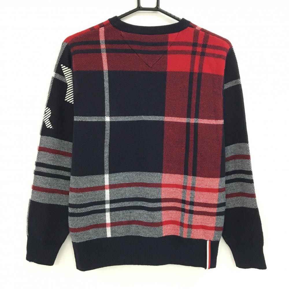 【美品】トミーヒルフィガーゴルフ セーター ネイビー×レッド チェック ロゴ ニット レディース M ゴルフウェア Tommy Hilfiger Golf
