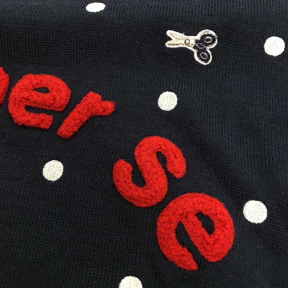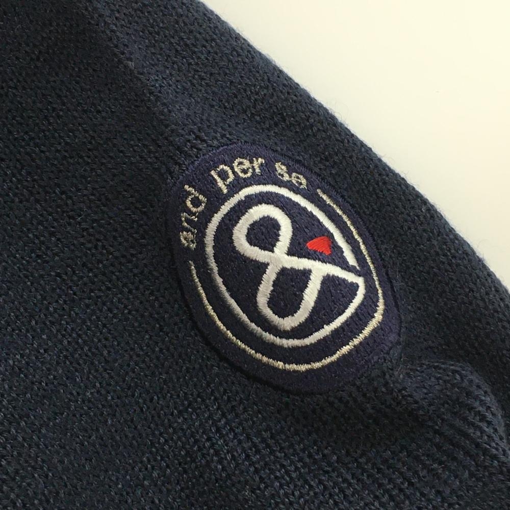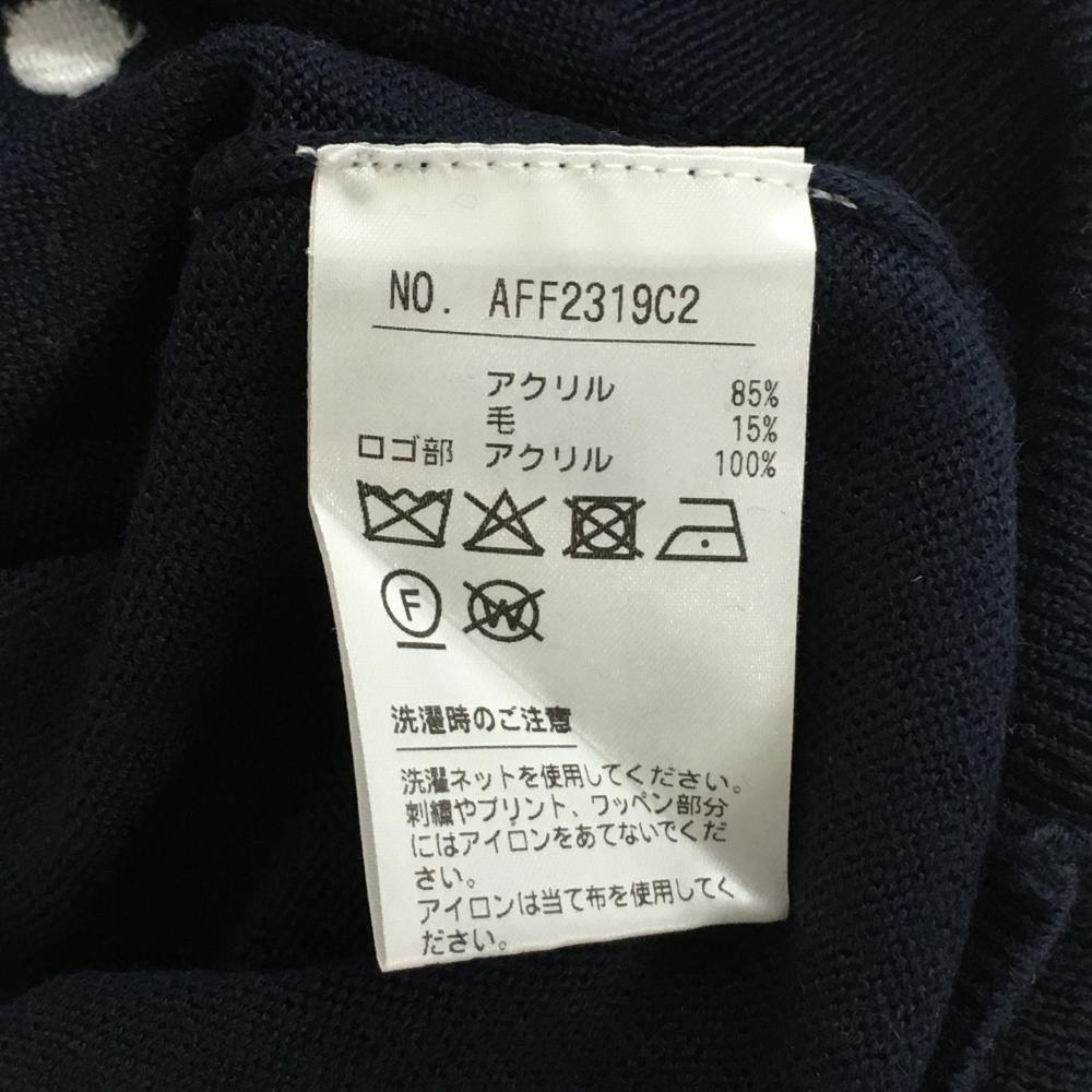 【超美品】アンパスィ セーター ネイビー×白 前面・袖ドット ロゴさがら刺しゅう ニット レディース M ゴルフウェア and per se