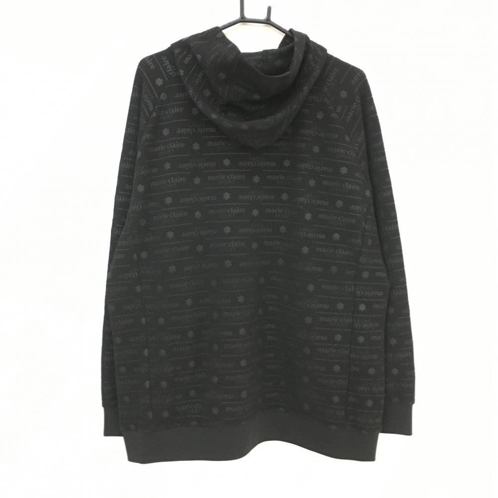 【超美品】マリクレールスポール ジップパーカー 黒 ロゴ総柄 凹凸生地 ジャケット レディース 6L ゴルフウェア 大きいサイズ marie claire