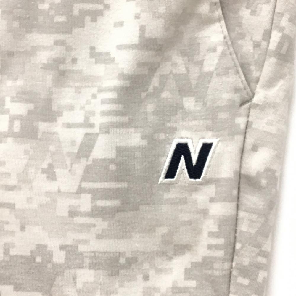 ニューバランスゴルフ パンツ 白×ライトグレー モザイク調カモフラ柄 迷彩 裏微起毛 メンズ 6(XL) ゴルフウェア New Balance