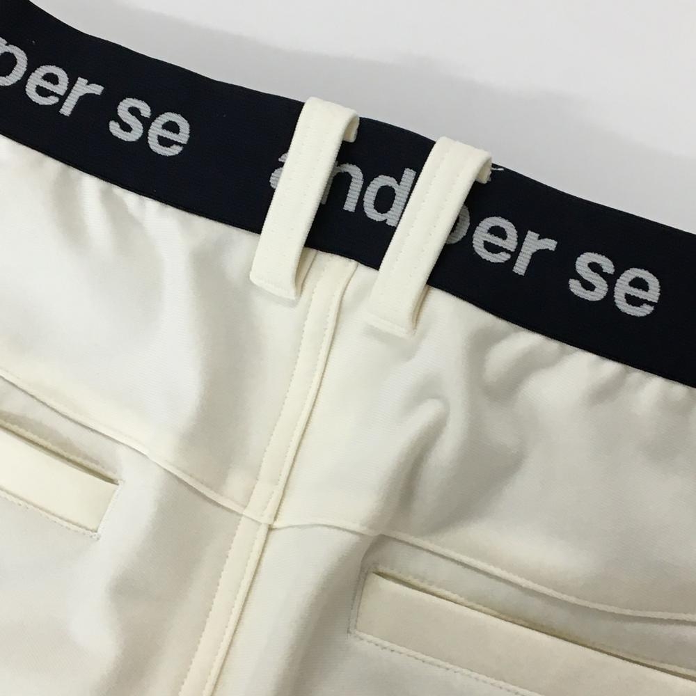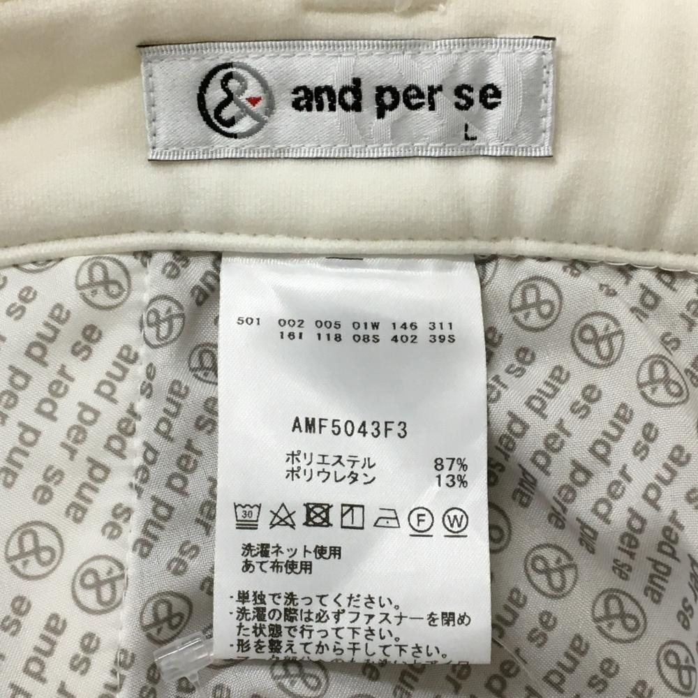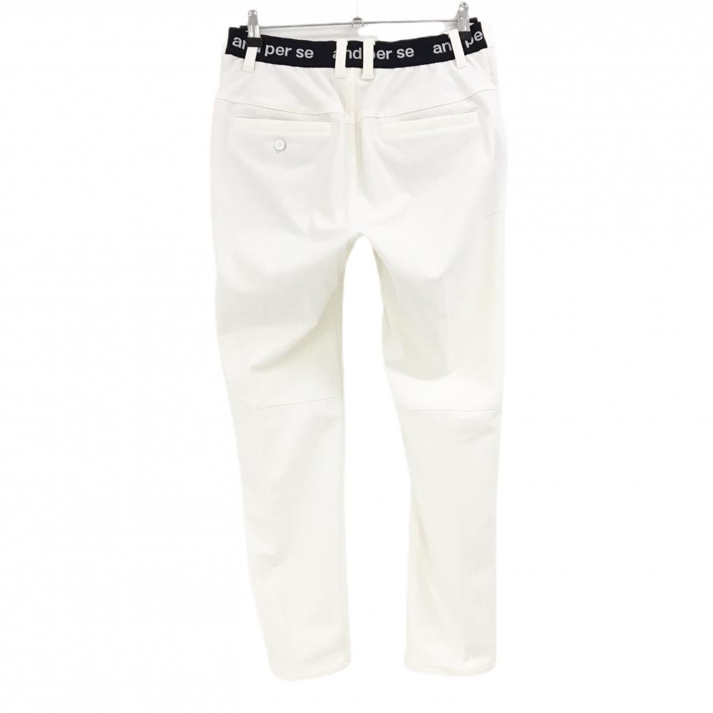 【超美品】アンパスィ パンツ 白×ネイビー 立体ロゴ ウエスト後ろゴム 裏微起毛 メンズ L ゴルフウェア and per se