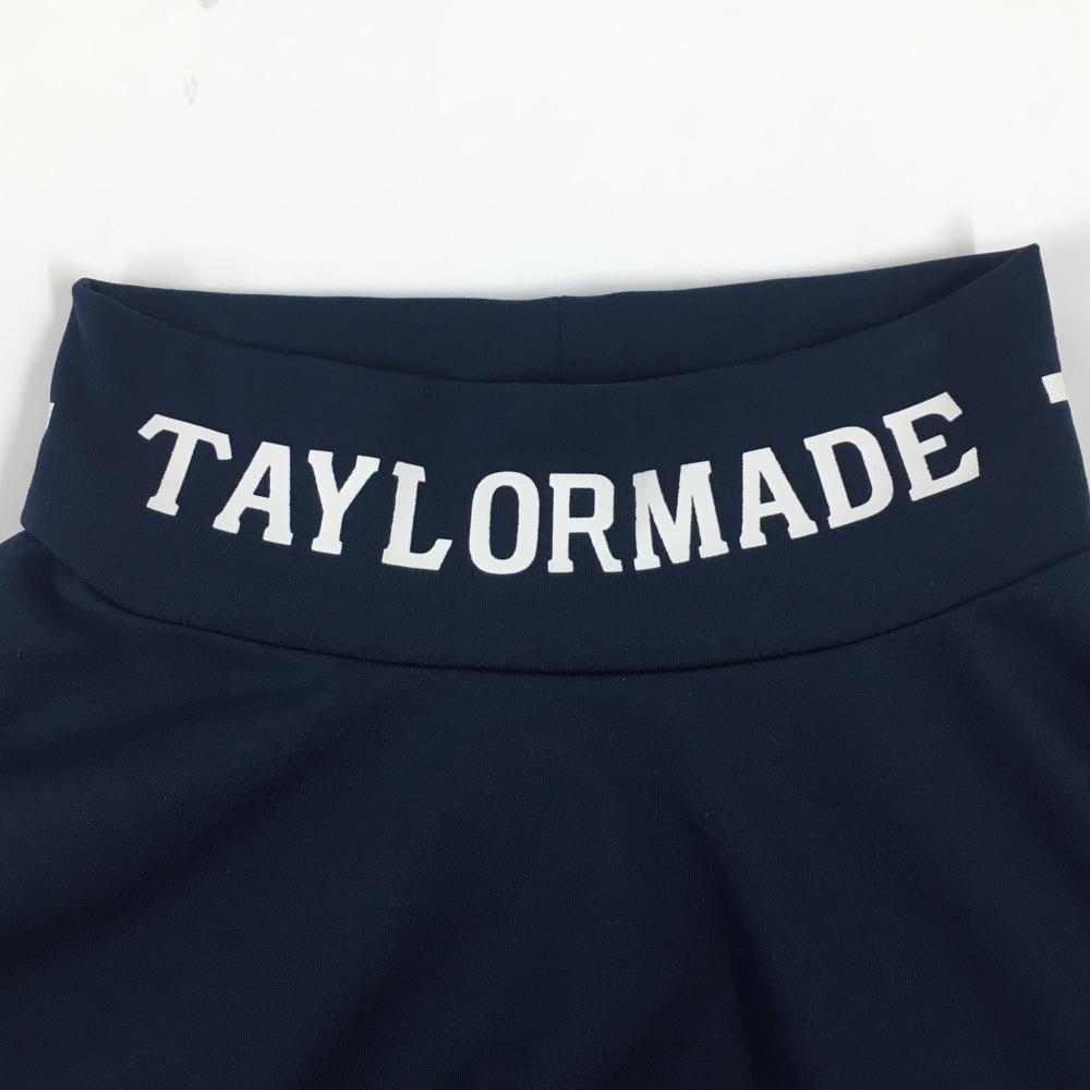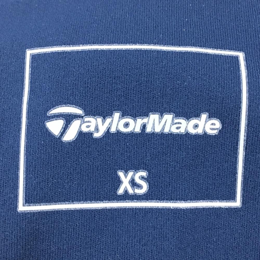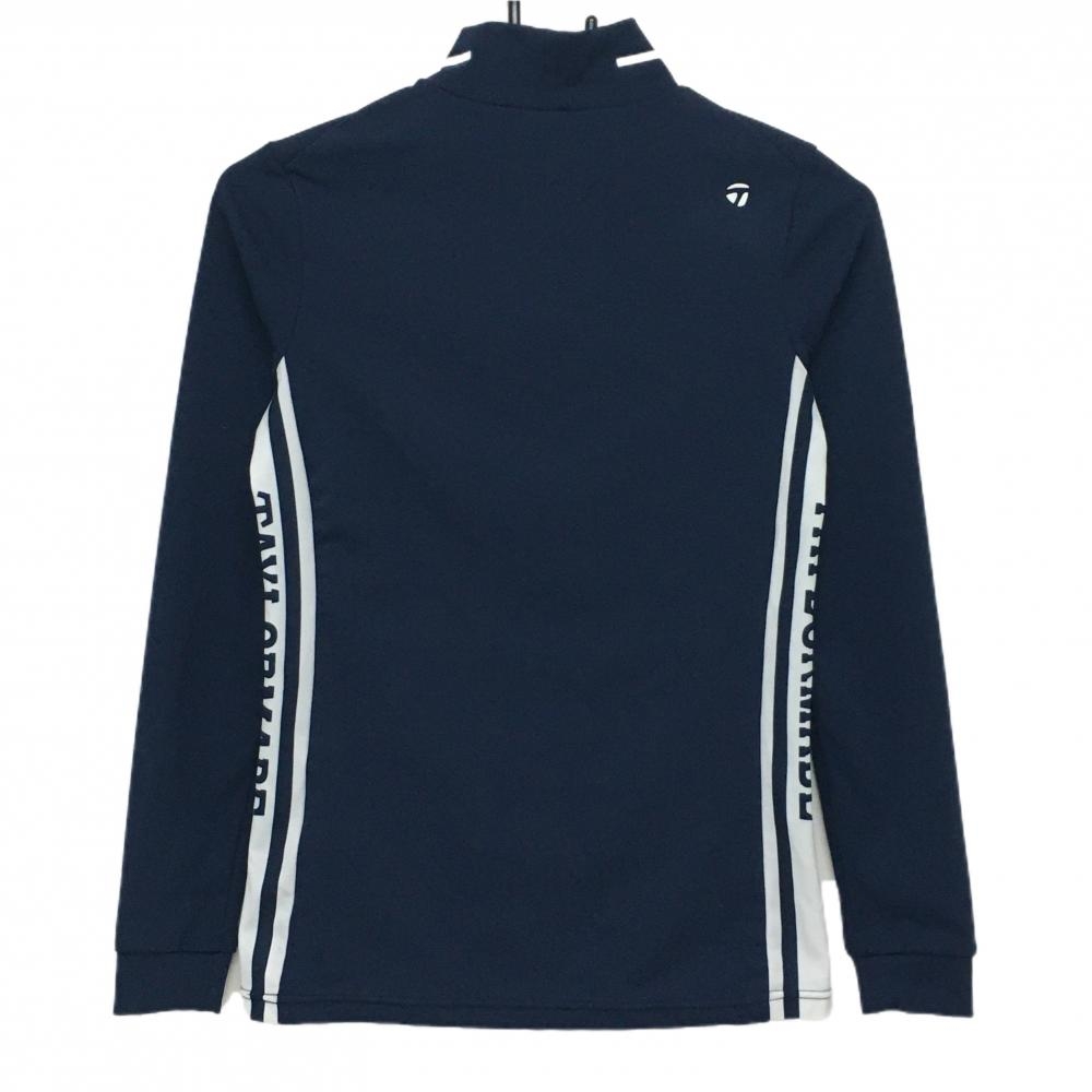 【美品】テーラーメイド 長袖ハイネックシャツ ネイビー×白 ネック・サイドロゴ ストレッチ レディース XS ゴルフウェア TaylorMade