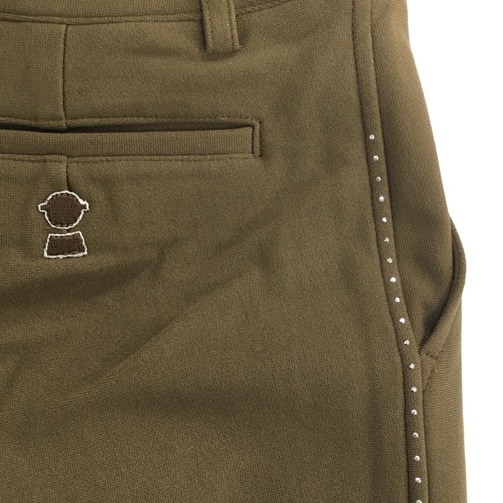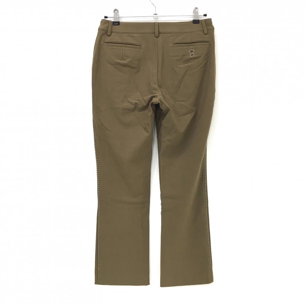 【超美品】ピッコーネ ストレッチパンツ ブラウン サイドラインストーン ロゴ刺しゅう 裏微起毛 レディース 40(L) ゴルフウェア PICONE