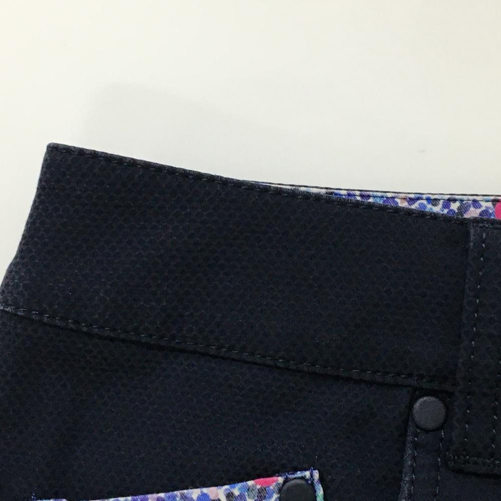 23区ゴルフ パンツ ダークネイビー 一部柄 ラインストーンロゴ レディース 70 ゴルフウェア 23区