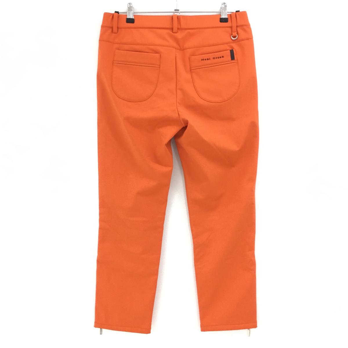 【美品】ヒールクリーク パンツ オレンジ シンプル ロゴ刺しゅう ストレッチ 裏起毛 レディース 44(XL) ゴルフウェア Heal Creek