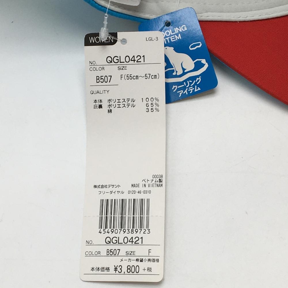 【新品】ルコックゴルフ サンバイザー ライトブルー×イエロー 一部柄 レモン レディース F(55cm~57cm) ゴルフウェア le coq sportif