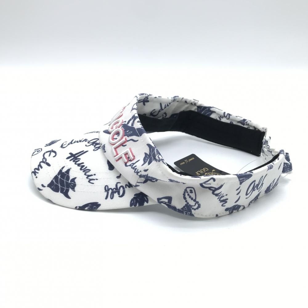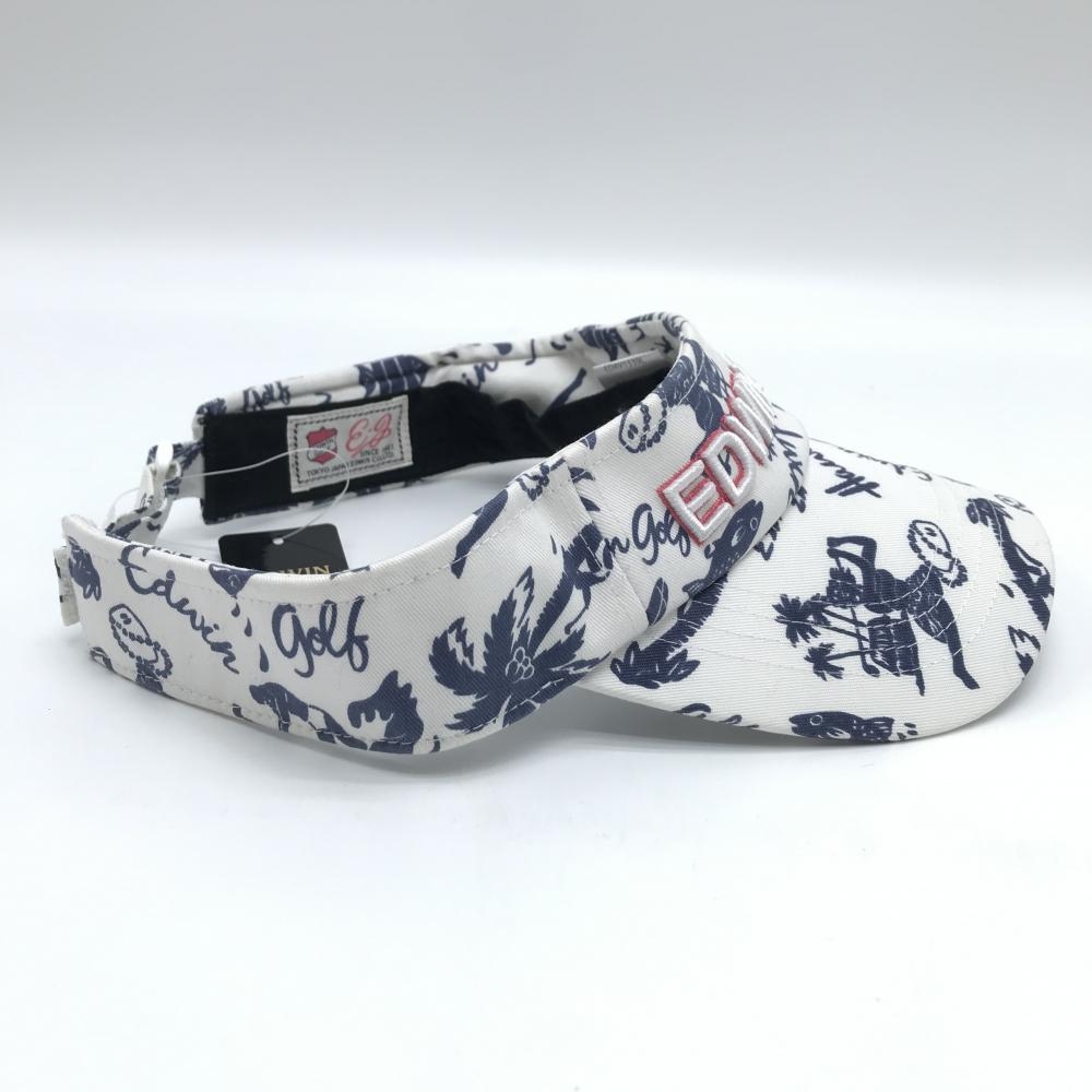 【新品】エドウィンゴルフ サンバイザー 白×ネイビー 総柄 ハワイ F ゴルフウェア EDWIN GOLF