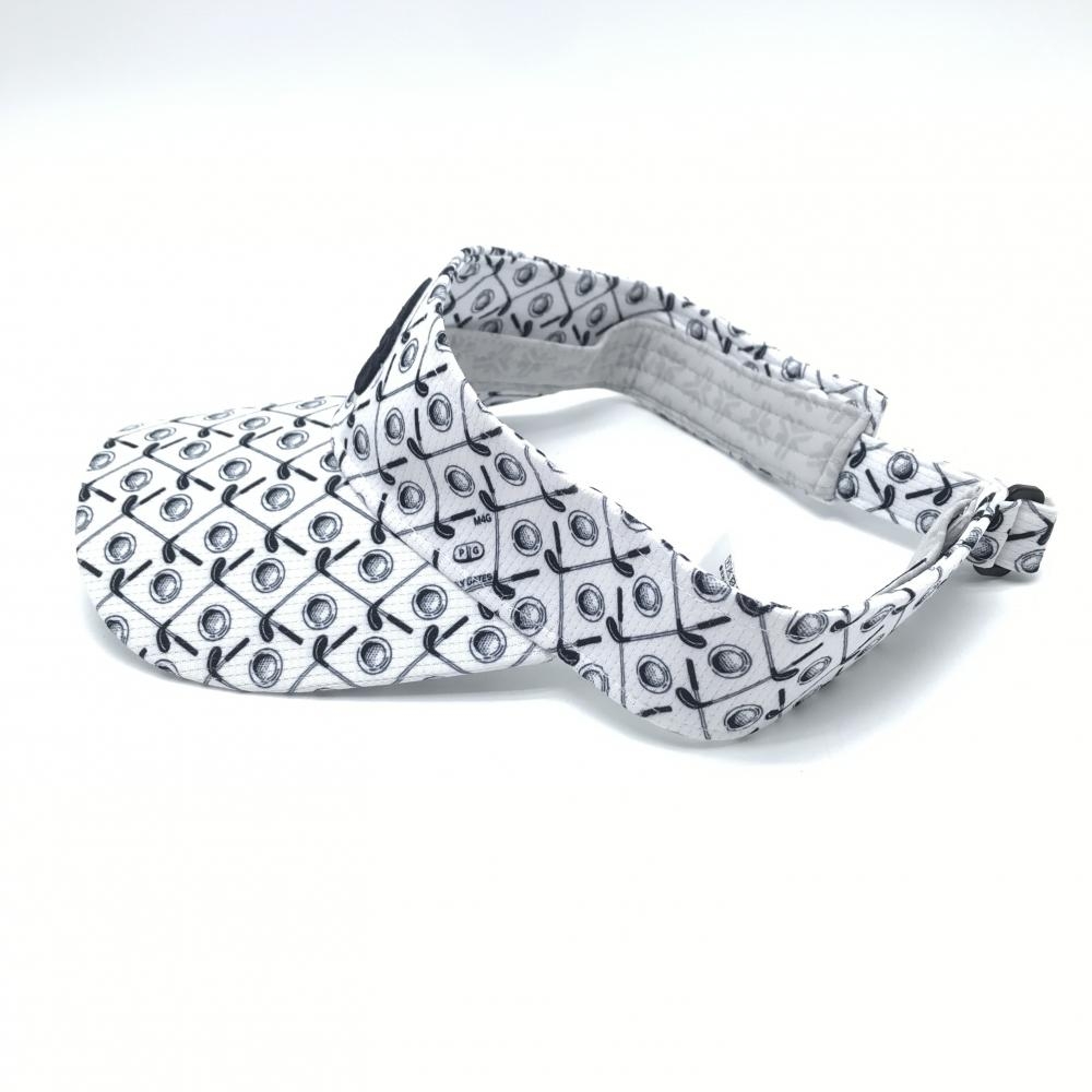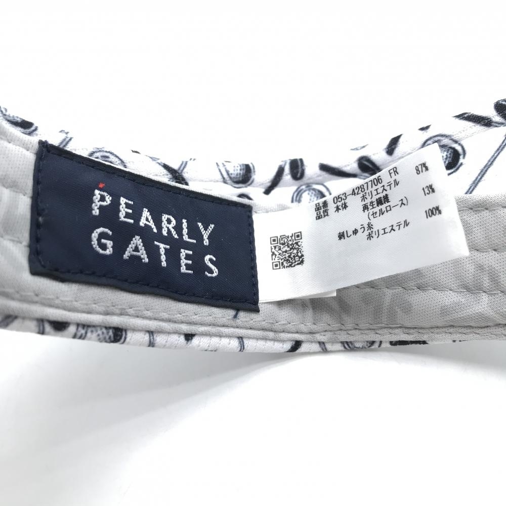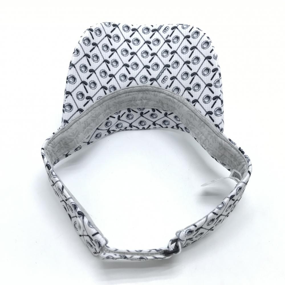 【美品】パーリーゲイツ サンバイザー 白×ダークネイビー 総柄 ゴルフクラブ ボール FR ゴルフウェア 2024年モデル PEARLY GATES