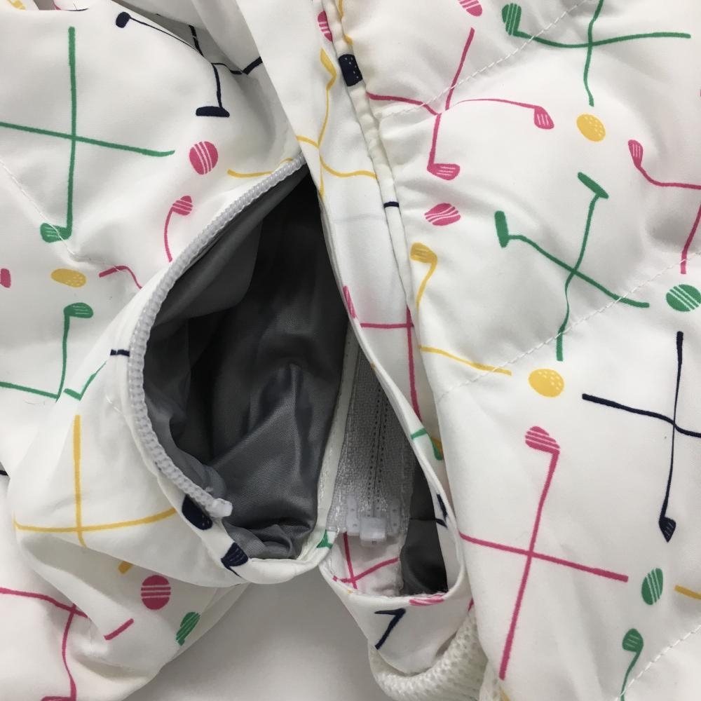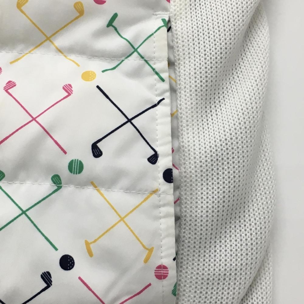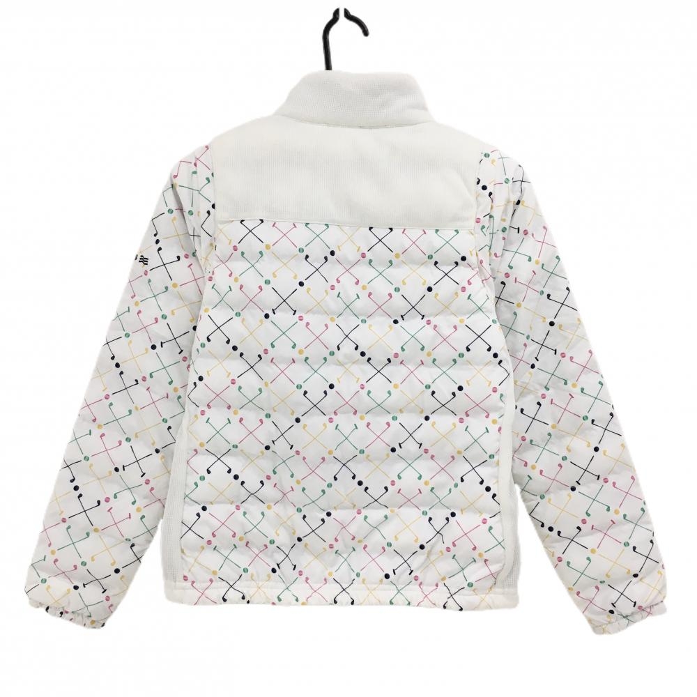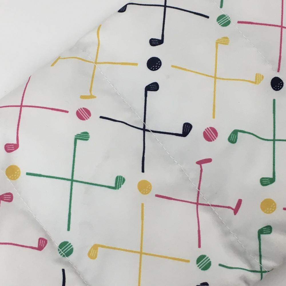 アディダス 2WAY中綿ジャケット 白×マルチカラー 総柄 ロゴ刺しゅう 袖着脱可 レディース M/M ゴルフウェア adidas
