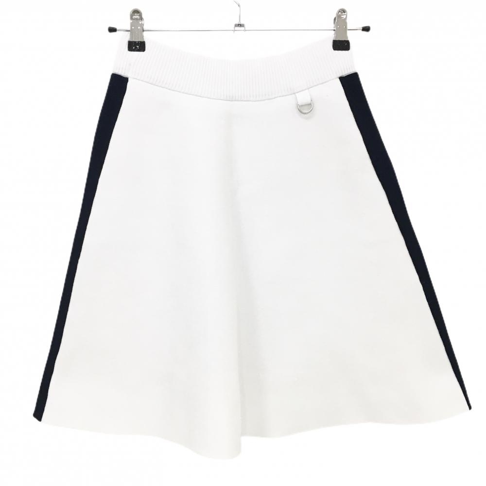 【美品】マリクレールスポール ニットスカート 白×ダークネイビー サイドロゴ 裏地付き レディース S ゴルフウェア marie claire