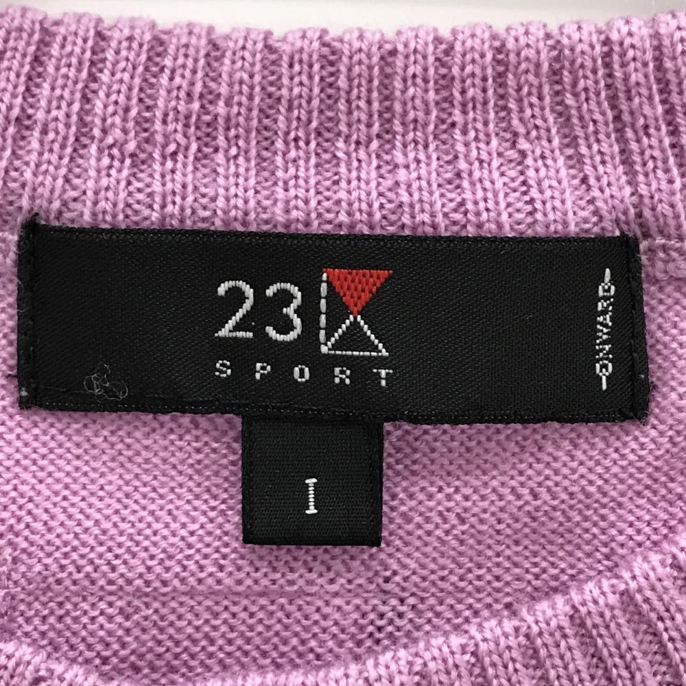 23区スポーツ ニットベスト ピンクパープル ボタン ウール100% レディース I(M) ゴルフウェア 23区