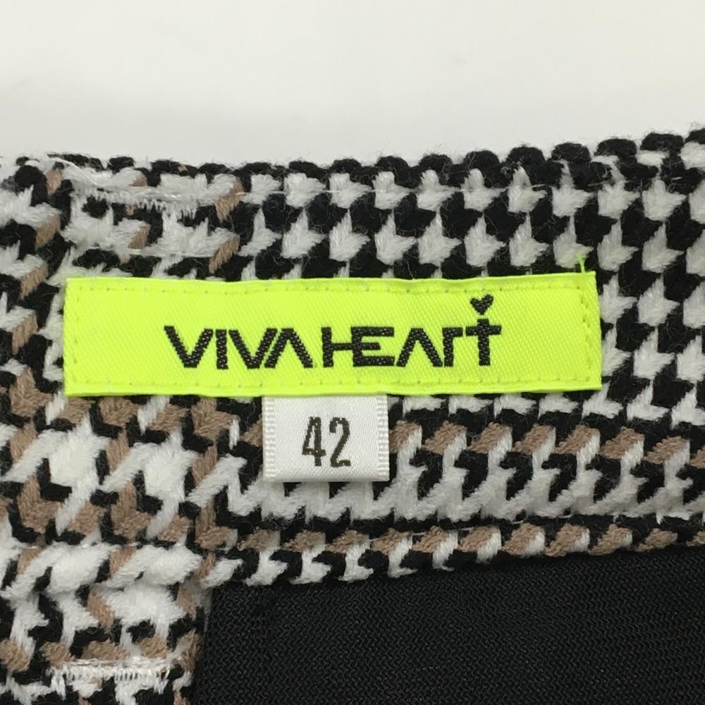 【美品】ビバハート スカート 白×黒 チェック ニット ロゴ刺しゅう レディース 42(L) ゴルフウェア VIVA HEART