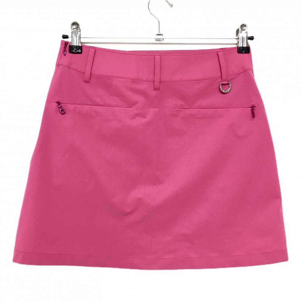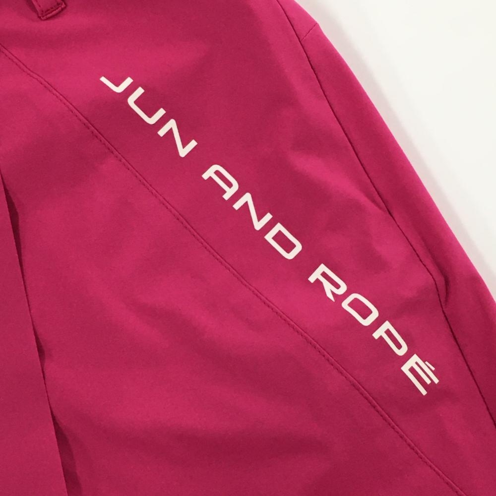 【美品】ジュンアンドロペ スカート ピンク×白 ロゴプリント 巻きスカート風 レディース S ゴルフウェア JUN&ROPE