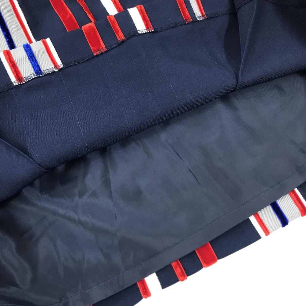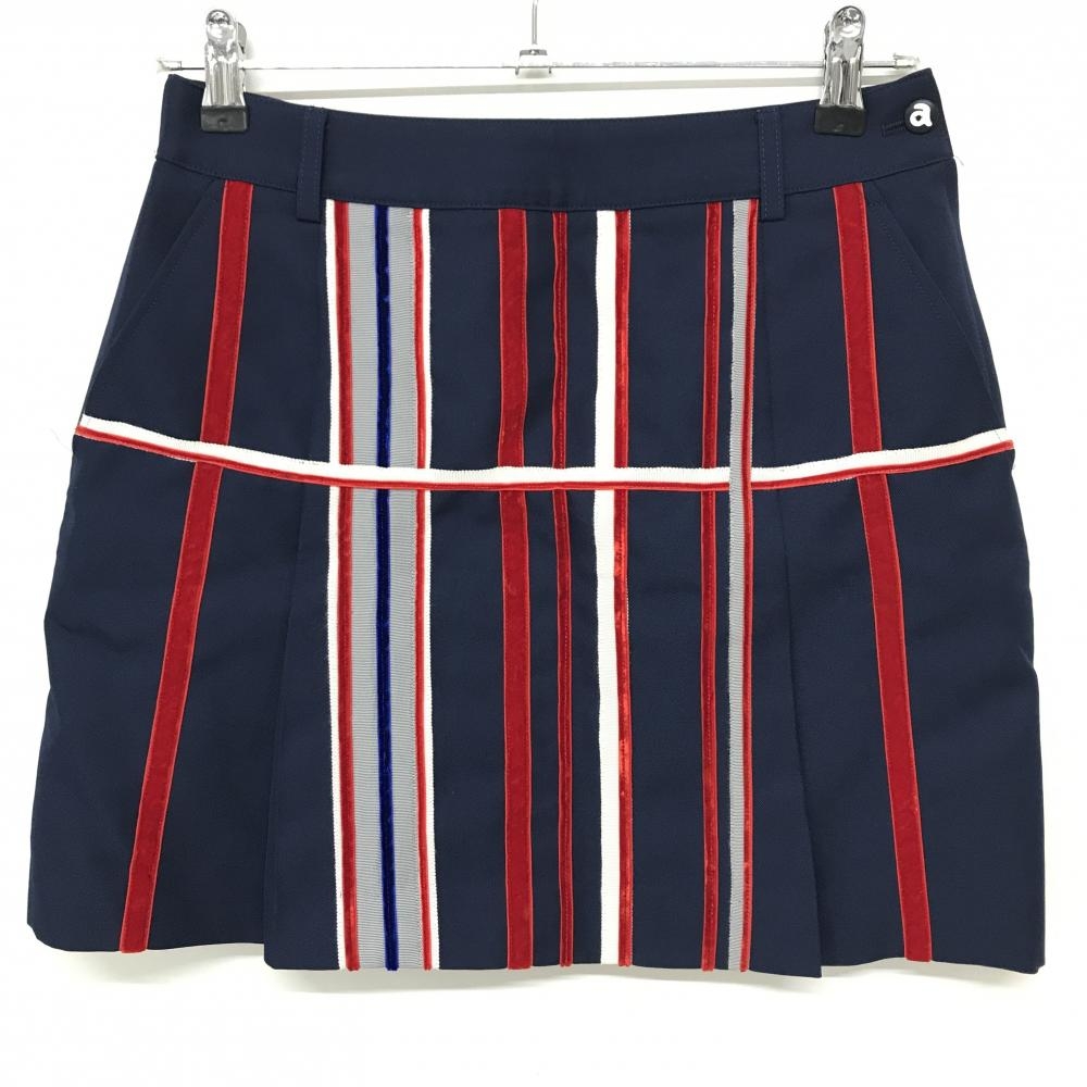 【超美品】アルチビオ スカート ネイビー×レッド×白 ランダムストライプ風 一部ベロア調 裏地付 レディース 38(M) ゴルフウェア archivio