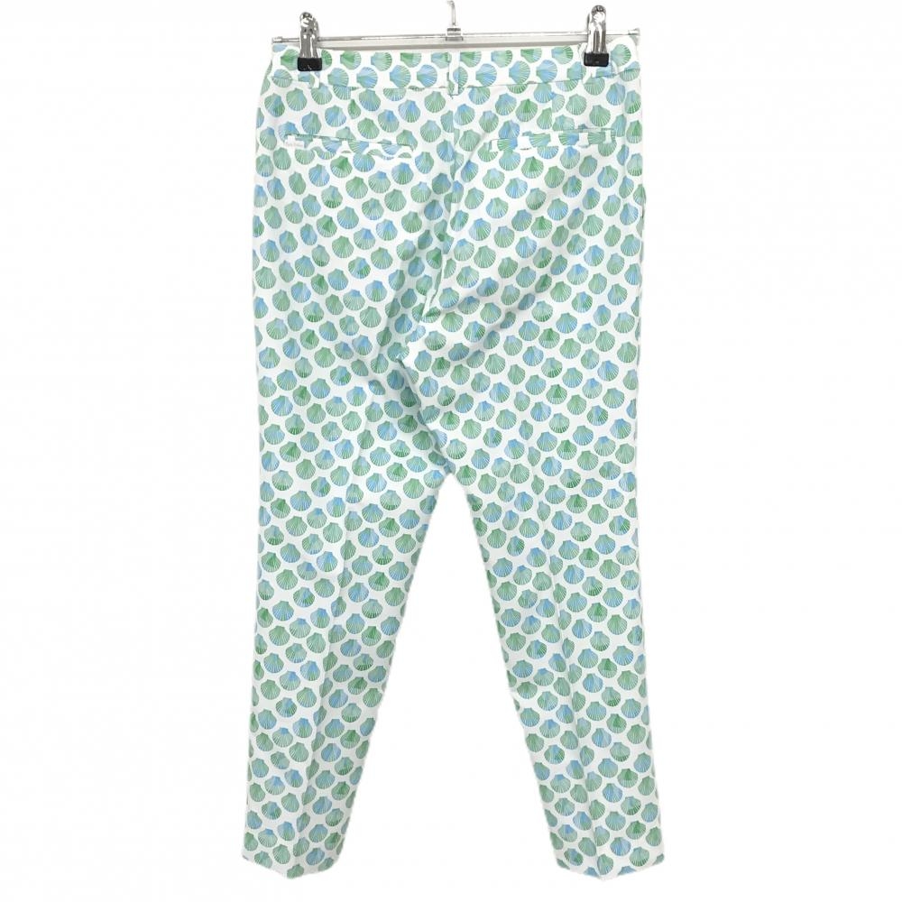 【超美品】フォーリアブリランテ パンツ 白×グリーン系×ブルー系 貝総柄 レディース 1 ゴルフウェア Foglia Brillante