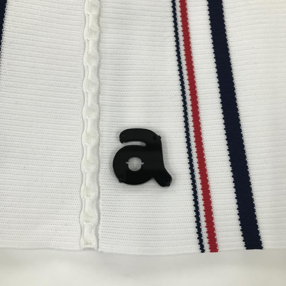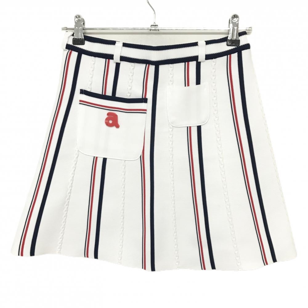【超美品】アルチビオ ニットスカート 白×ネイビー×レッド ストライプ ウエストゴム 裾ロゴ レディース 38(M) ゴルフウェア archivio