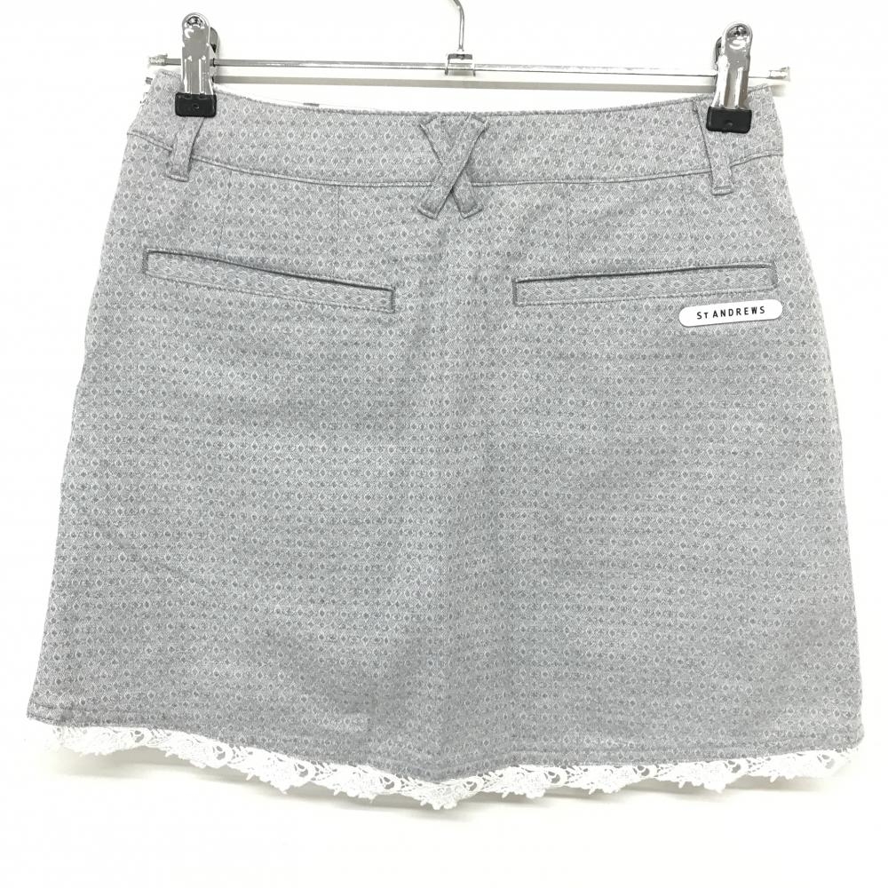 【超美品】セントアンドリュース スカート グレー 総柄地模様 裾レース ストレッチ レディース S ゴルフウェア St ANDREWS
