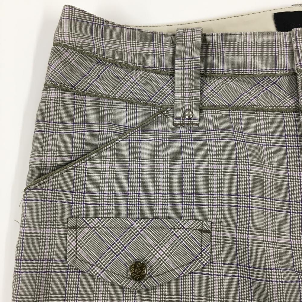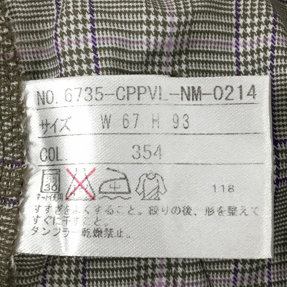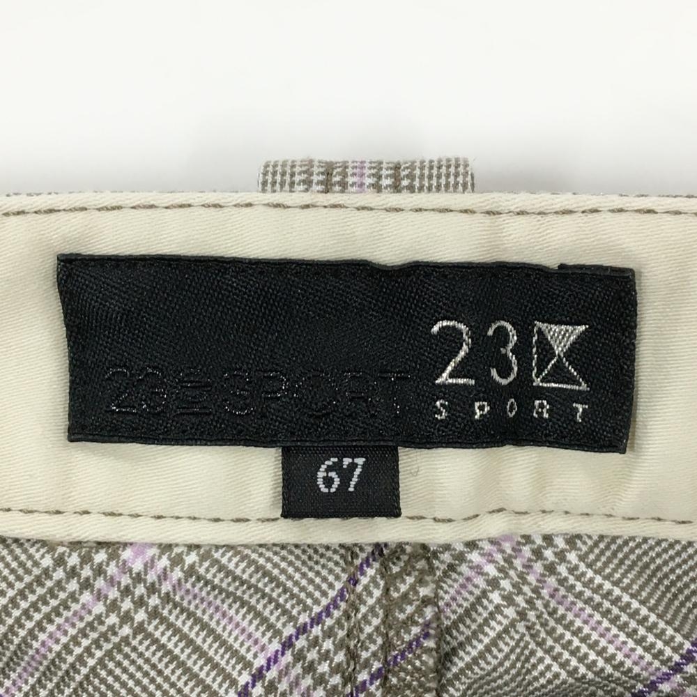 【超美品】23区スポーツ パンツ グレー×パープル チェック柄 ウエストパイピング レディース 67(L) ゴルフウェア 23区