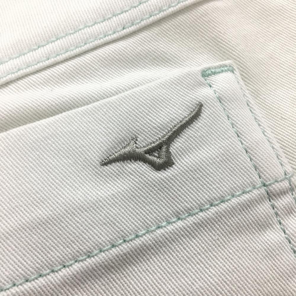 【美品】ミズノゴルフ パンツ 白系 ステッチミントブルー コットン混 レディース L ゴルフウェア MIZUNO