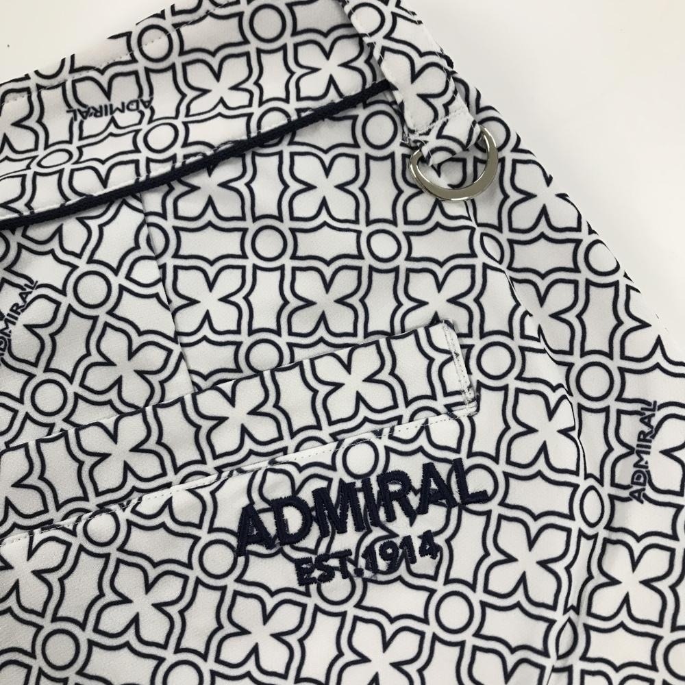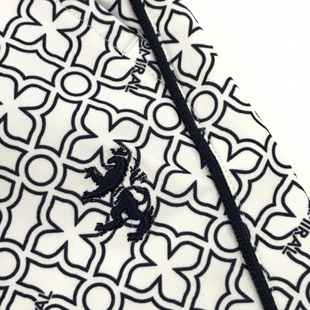 【美品】アドミラル パンツ 白×ネイビー 総柄 サイドライン ロゴ刺しゅう ストレッチ レディース L ゴルフウェア Admiral