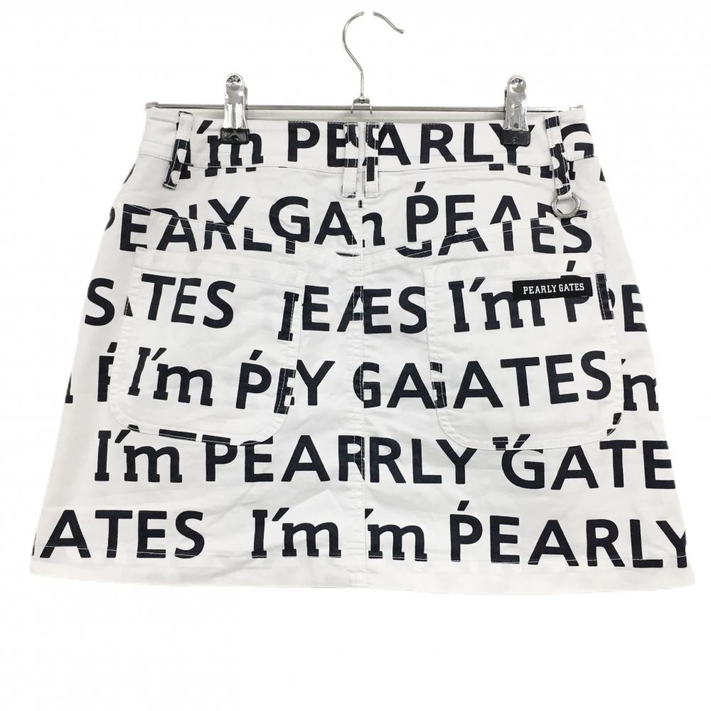 パーリーゲイツ スカート 白×ネイビー ロゴ総柄 ストレッチ 30周年 内側ニコちゃん レディース 0(S) ゴルフウェア PEARLY GATES